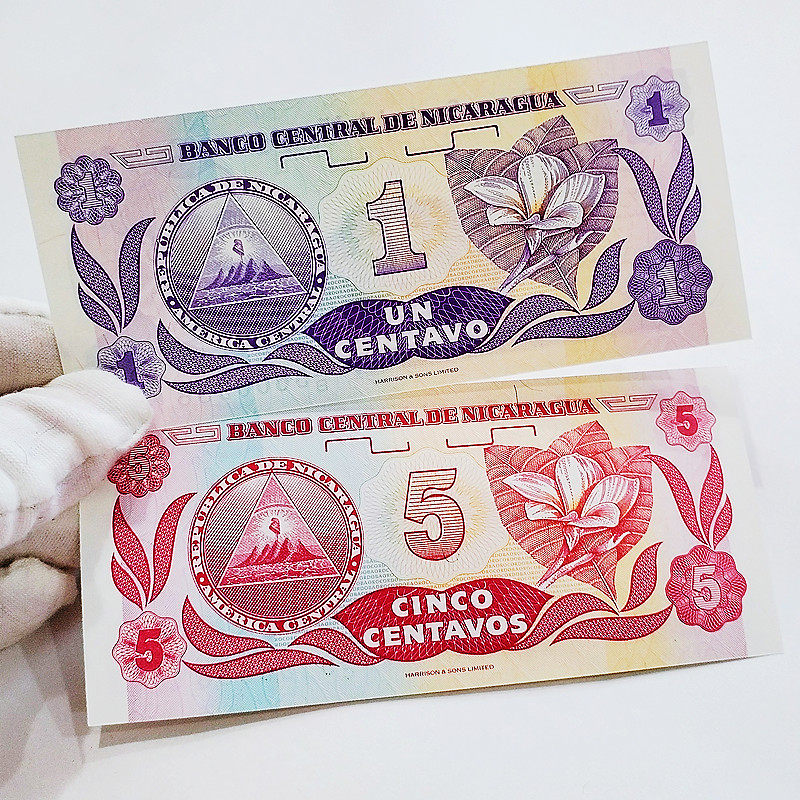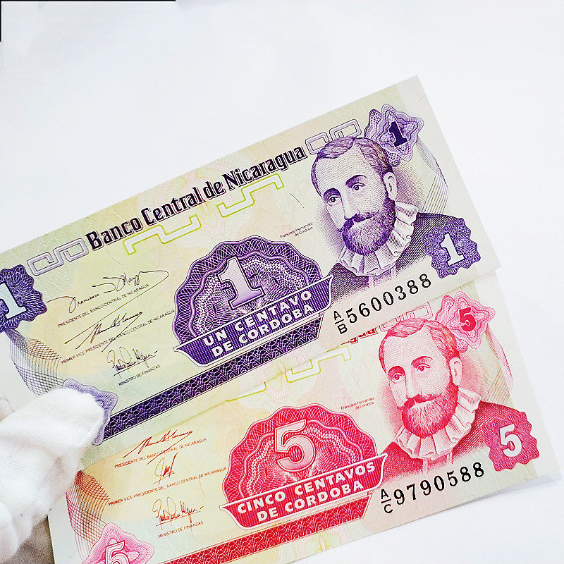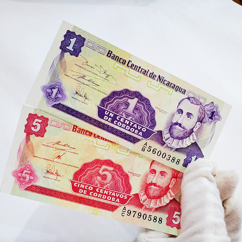 Foreign numismatic full double end 88 Nicaragua 1 and 5 raw Ding 2 banknotes in physical picture Americas True paper banknote collection