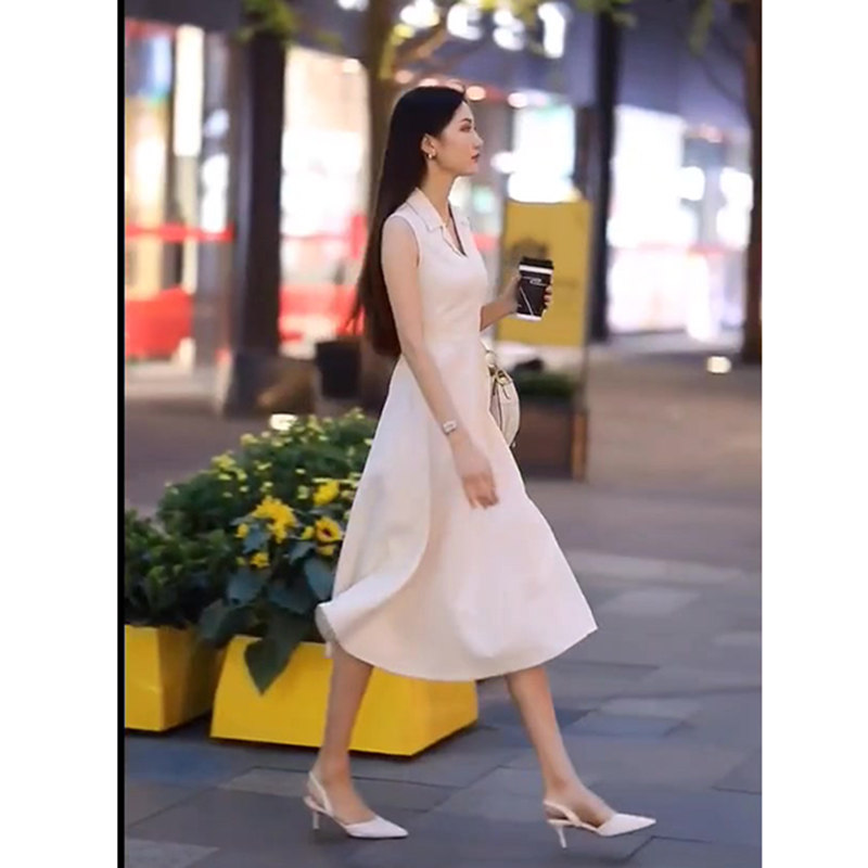 Langzi women's clothing 2022 summer new first love retro gentle small fragrance niche design white sleeveless dress