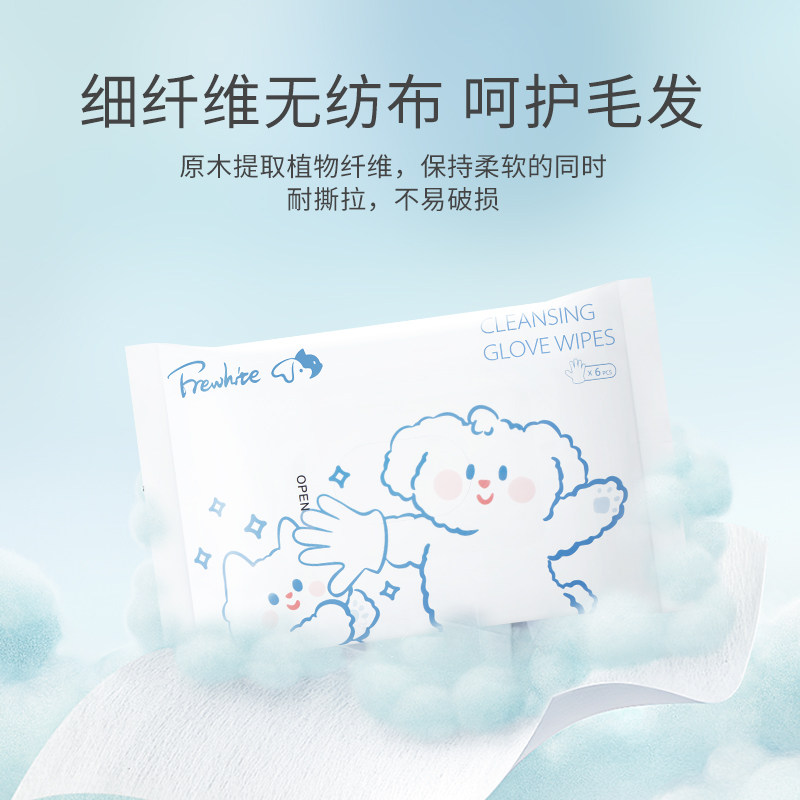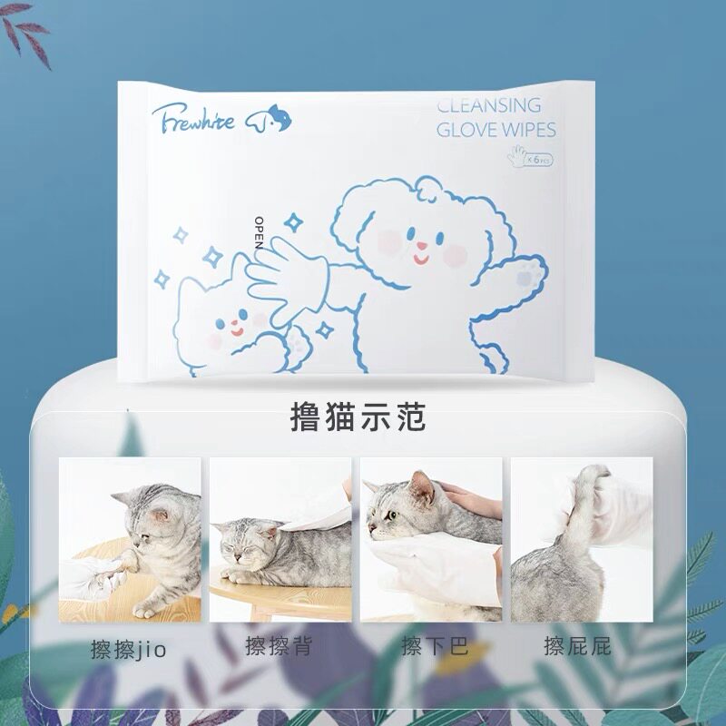 Furry white Frewhites pets free of washing without waterless cleaning gloves kitty dog deodorized and sterilized wet towel plant deodorized