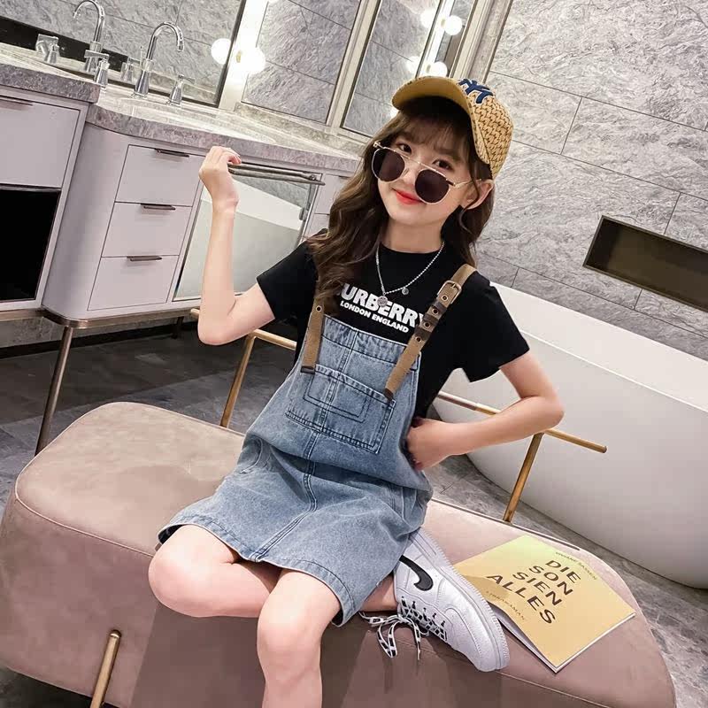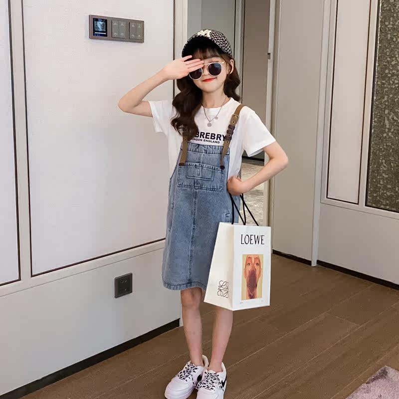 Tide Card Girl Cowboy Hug Bag Skirt Suit 2022 Summer New Korean version of the trendy Children Summer Dress Ocean Dress