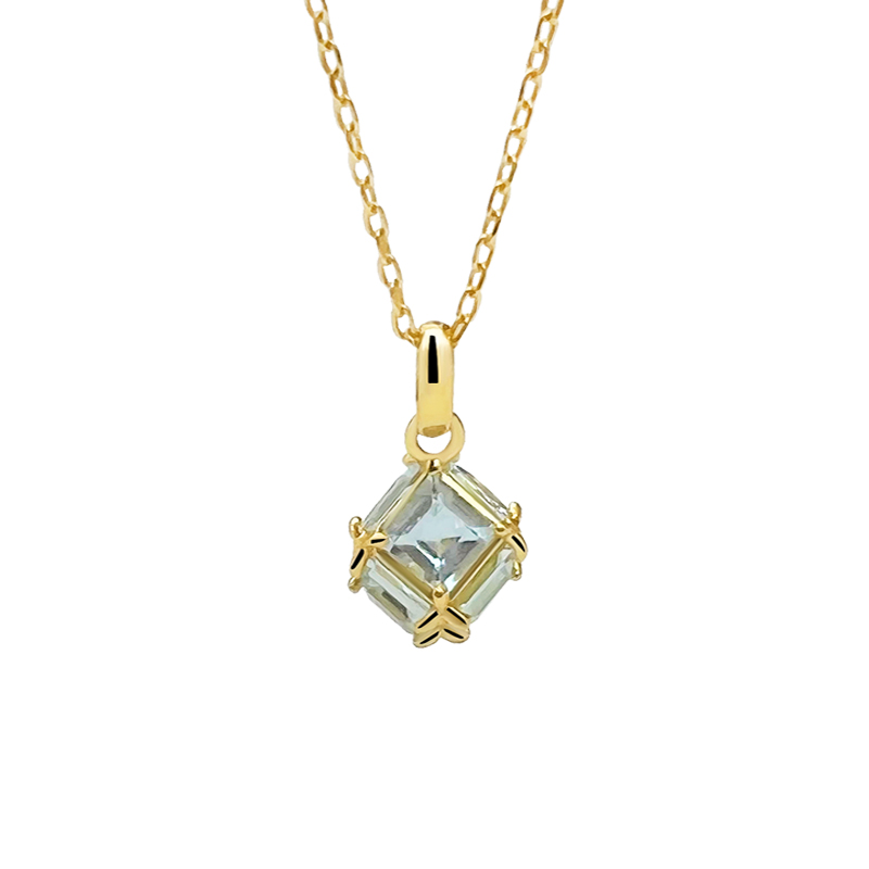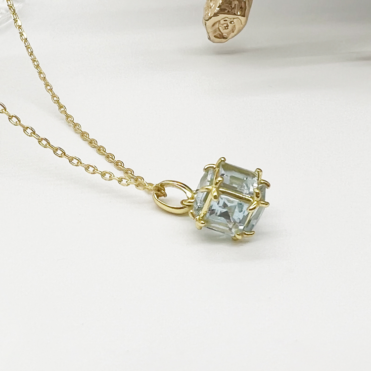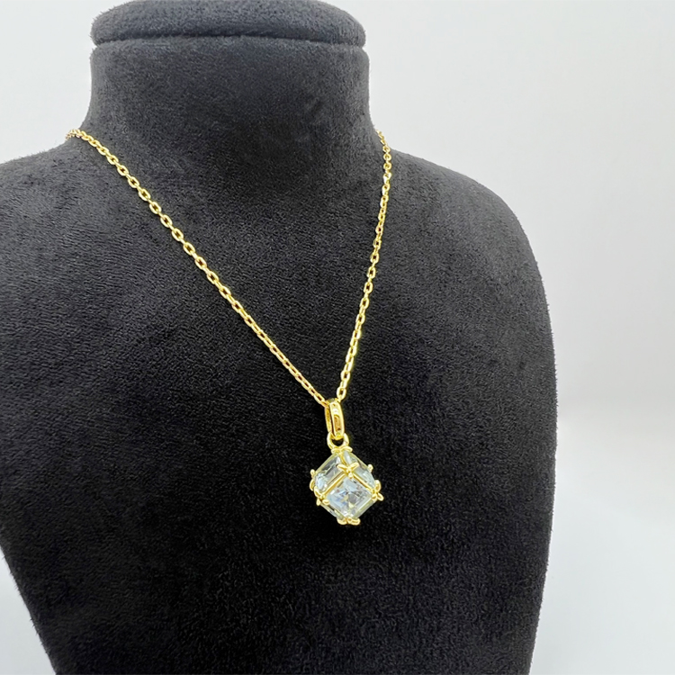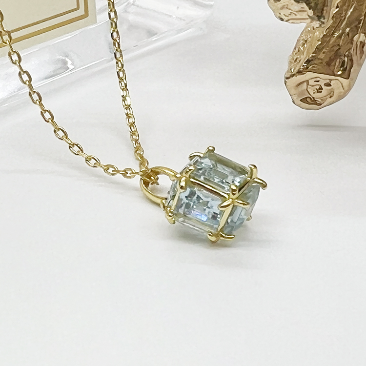 BM jewelry S925 silver gold-plated Rubik's cube necklace designer aquamarine collarbone chain light luxury niche small square pendant