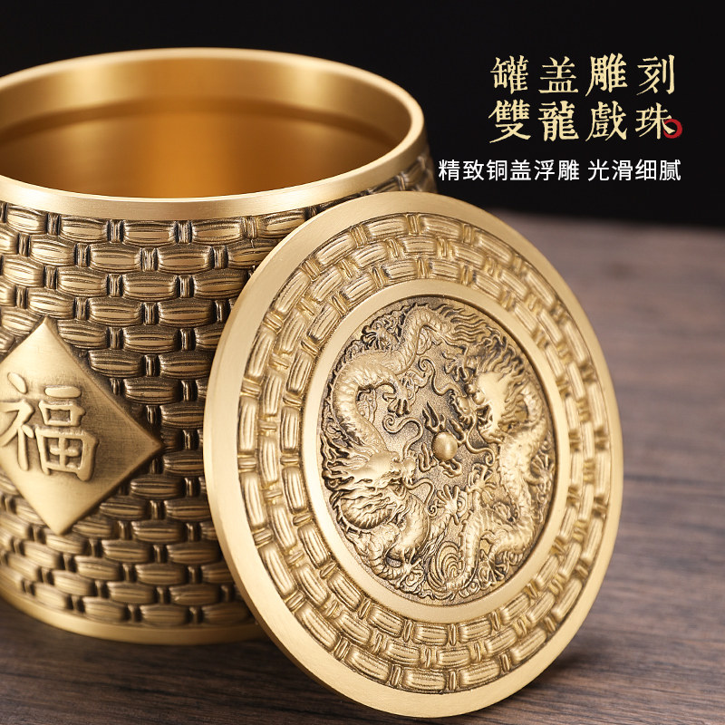 Pure copper full Fotea leaf jars Home Indoor Tea Road Moisture Proof Brass Jar Pendulum retro Wake Tea Sealed Jar