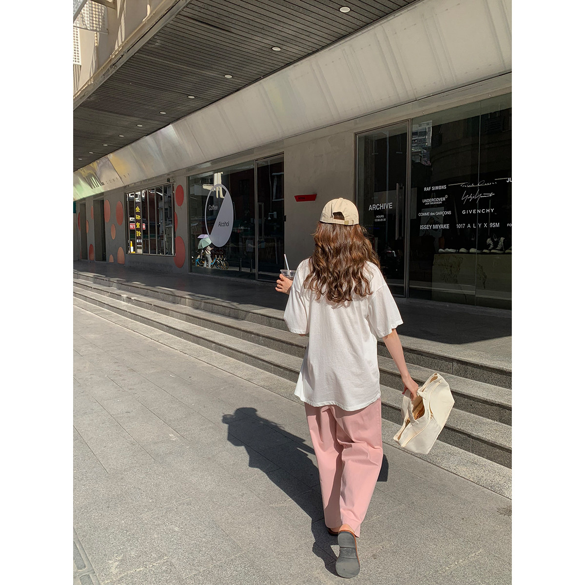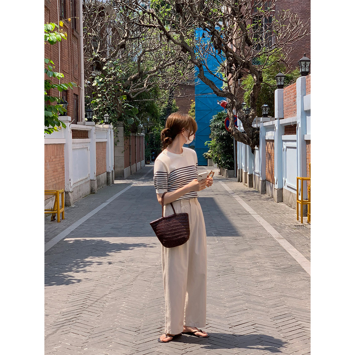 5siss high-waisted straight casual pants women's small summer Korean version all-match elastic waist wide-leg pants ninth pants trend