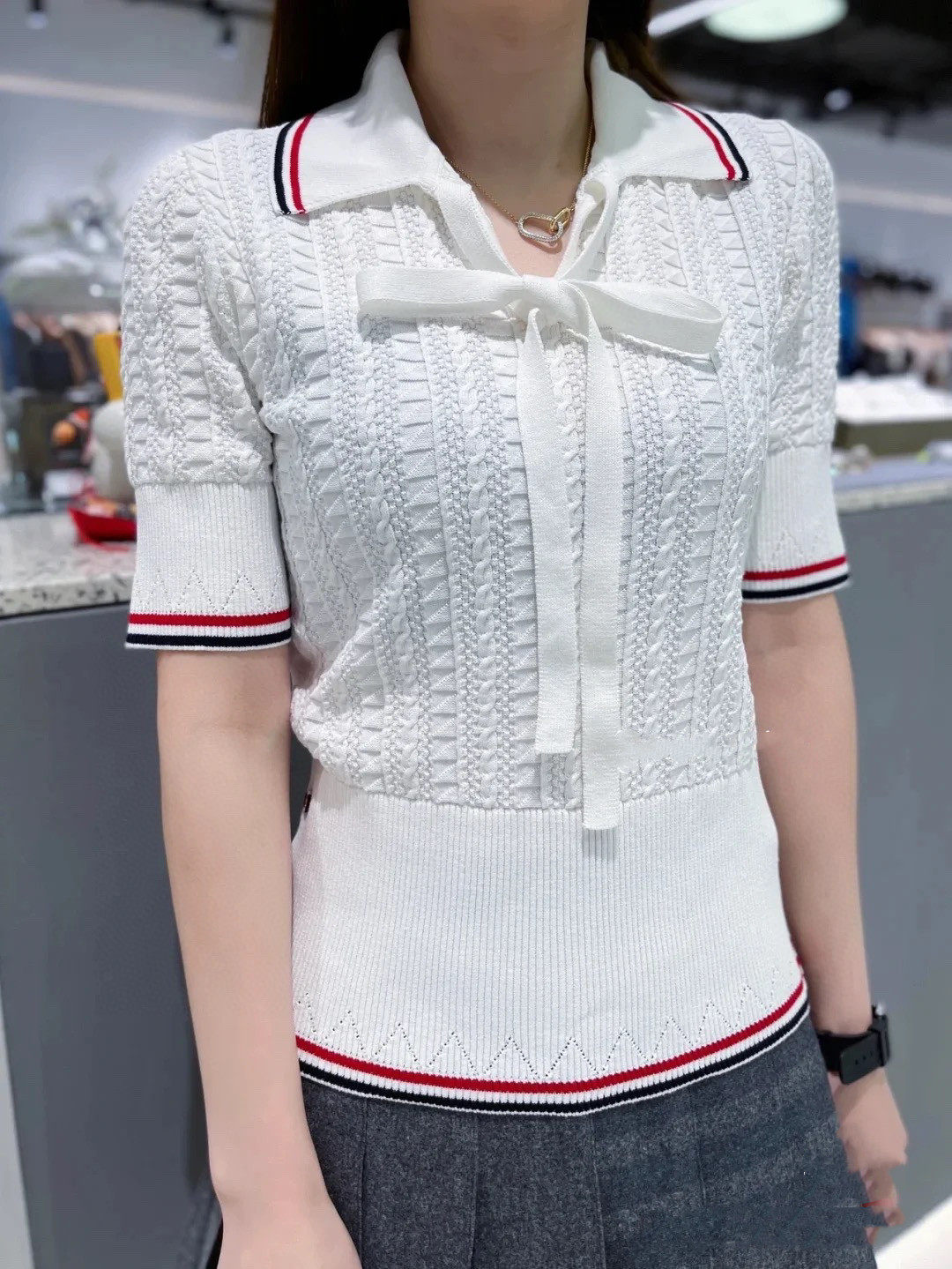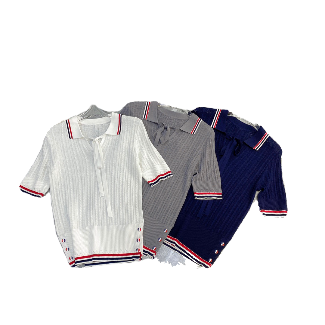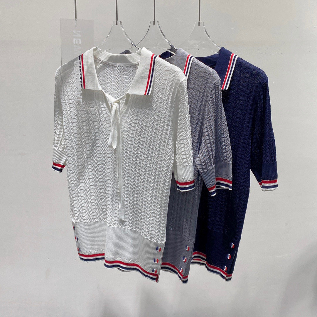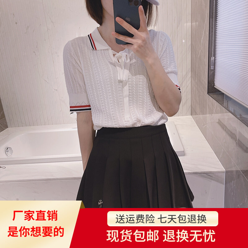 TB knit tie polo shirt women's air-conditioning summer ultra-thin T-shirt short-sleeved commuting trendy pullover air-conditioning shirt ice silk knitted t