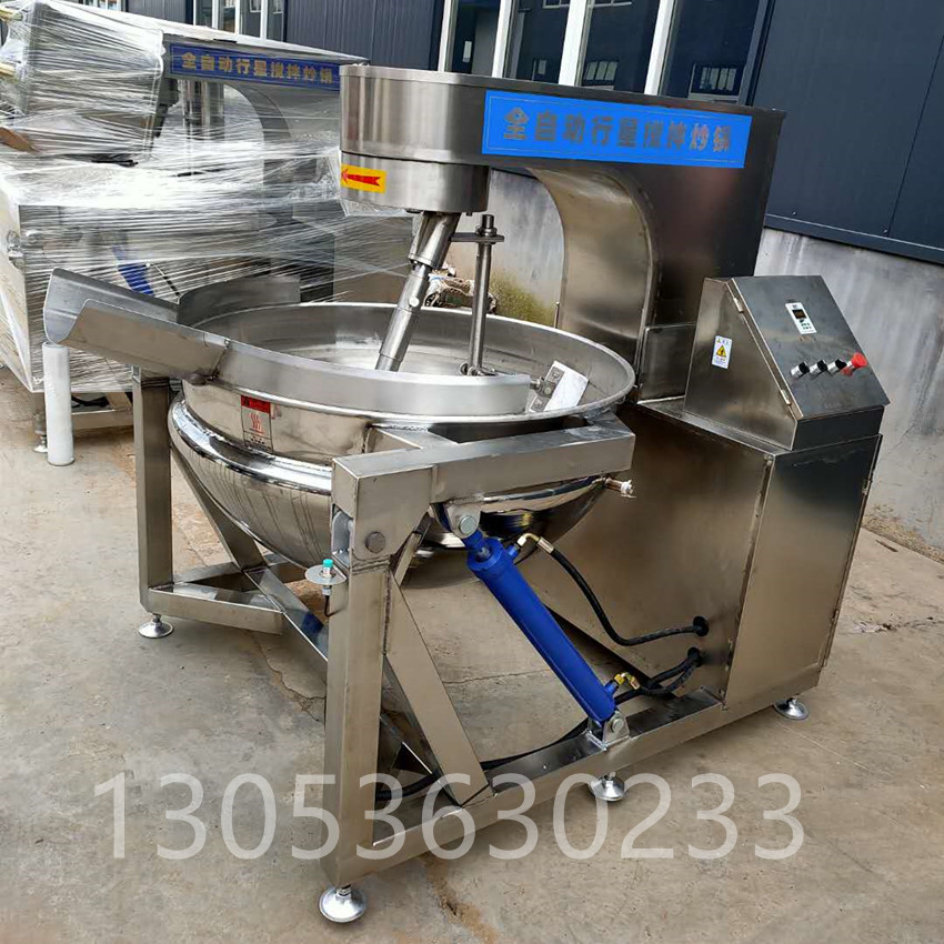 Large automatic electric heating chili sauce frying cooker industrial planet stirring frying cooker hot pot feed machine