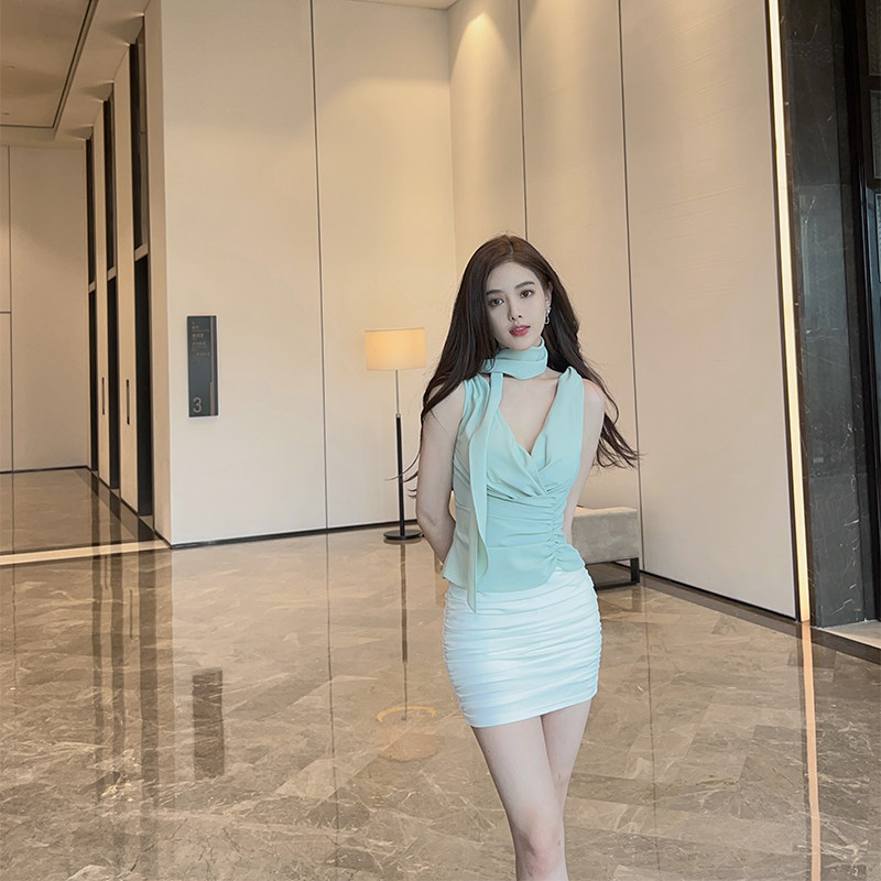 nicky French temperament short white top design sense female niche 2022 summer all-match v-neck sleeveless