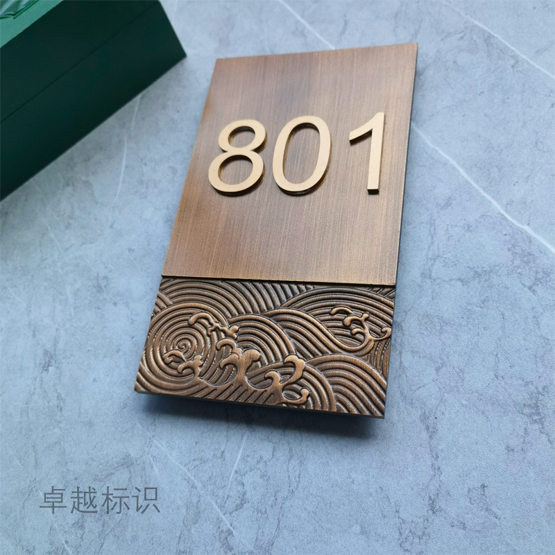 Home antique copper door plate custom embossed metal aluminum alloy home retro outdoor pure copper residential villa custom