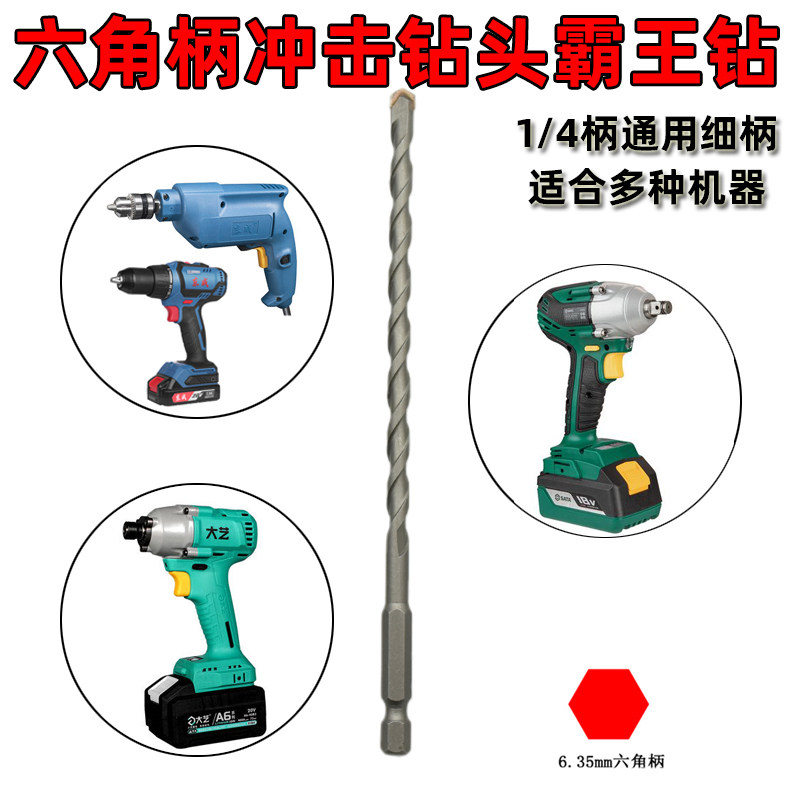 Electric plate hexagonal handle 6 35 shock drilling head lengthened triangular barking drill multifunction glass tile concrete iron-Taobao