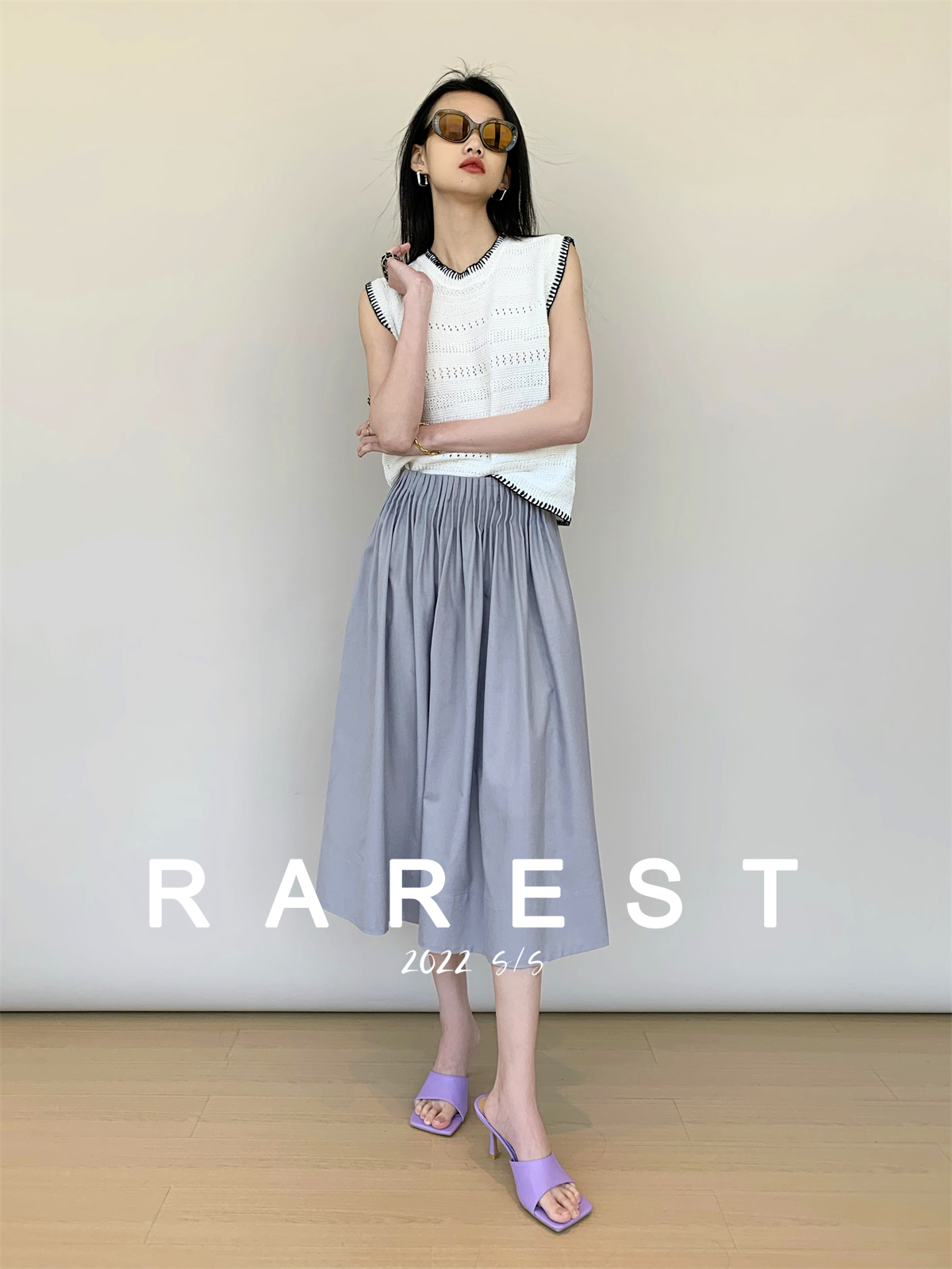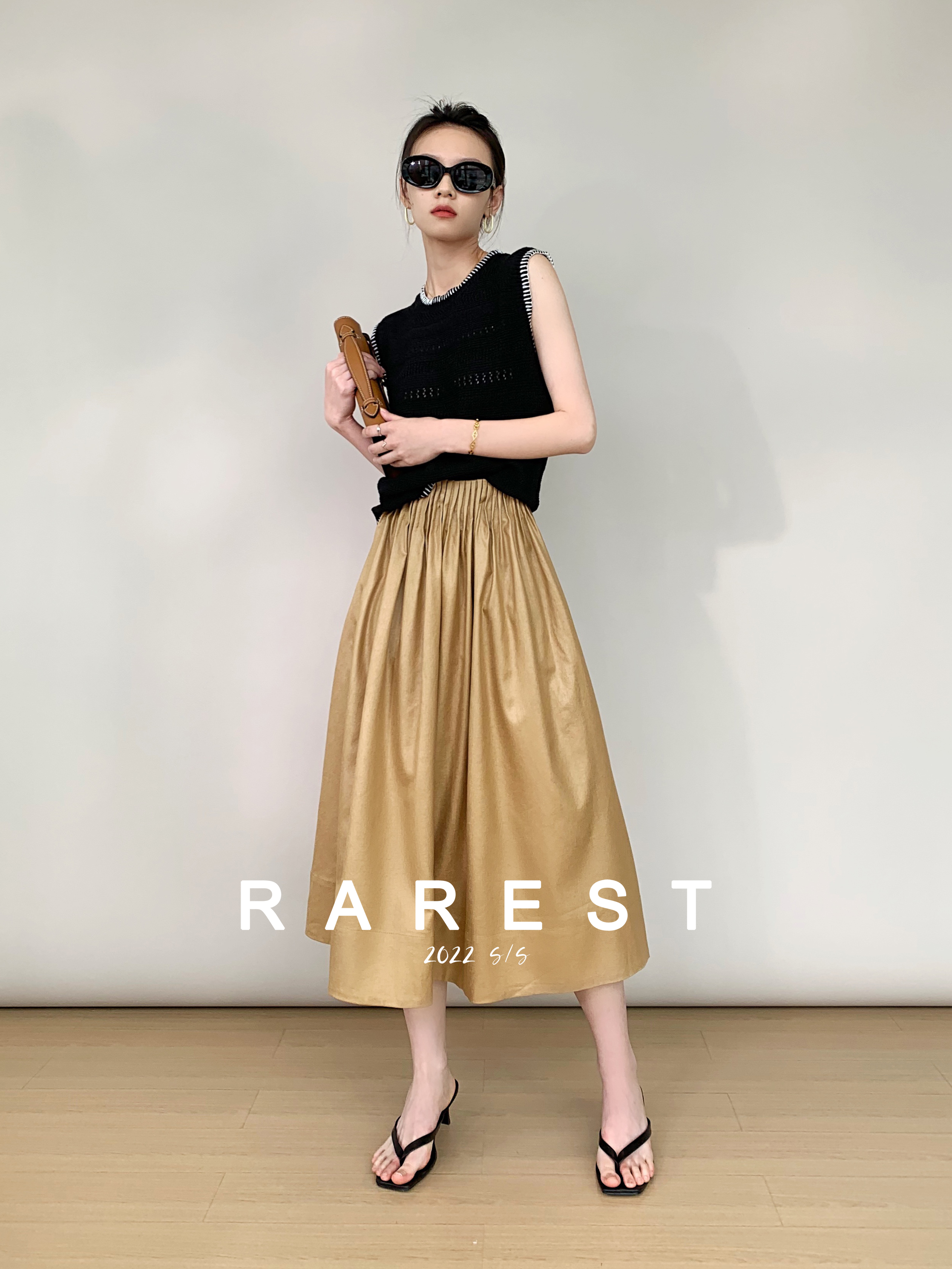 RAREST independent design German special machine craft three-dimensional pleated glossy high-rise hem skirt