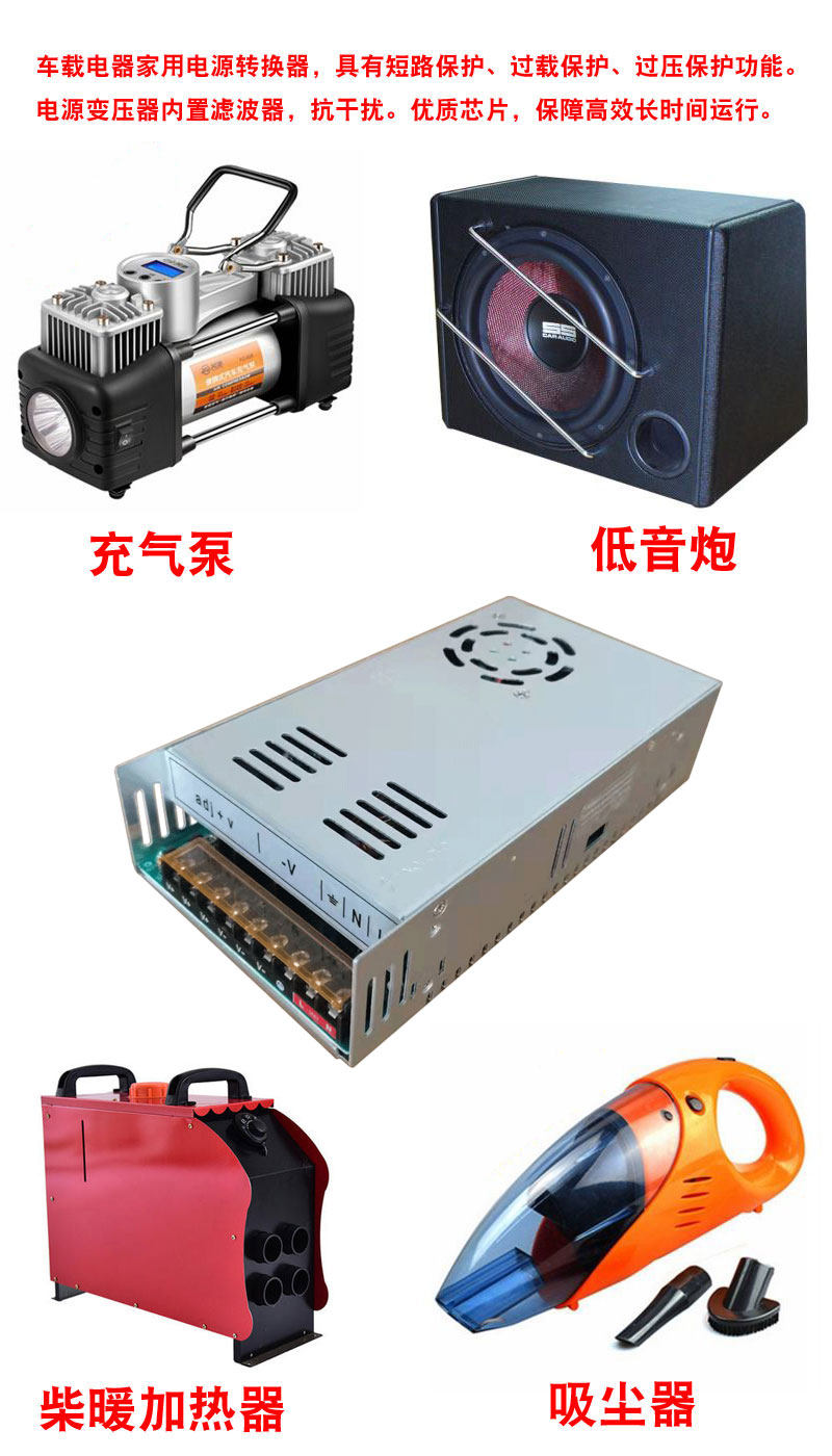 On-board inflator pump home transformer 220V turn 12V500W24V800W power amplifier sound CD power converter
