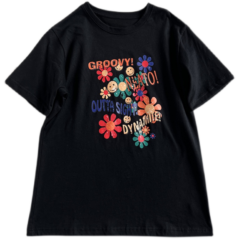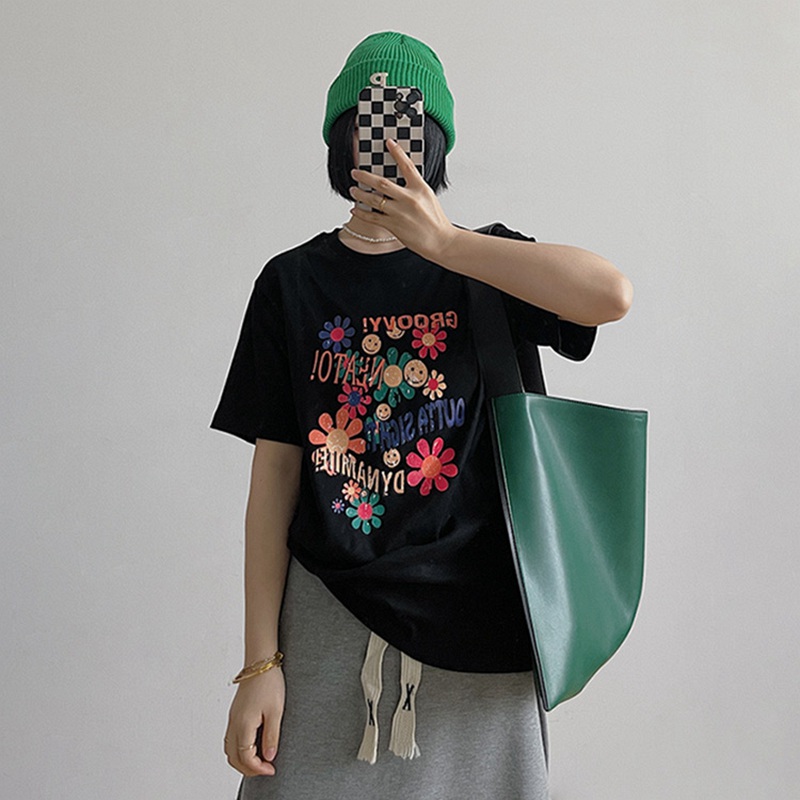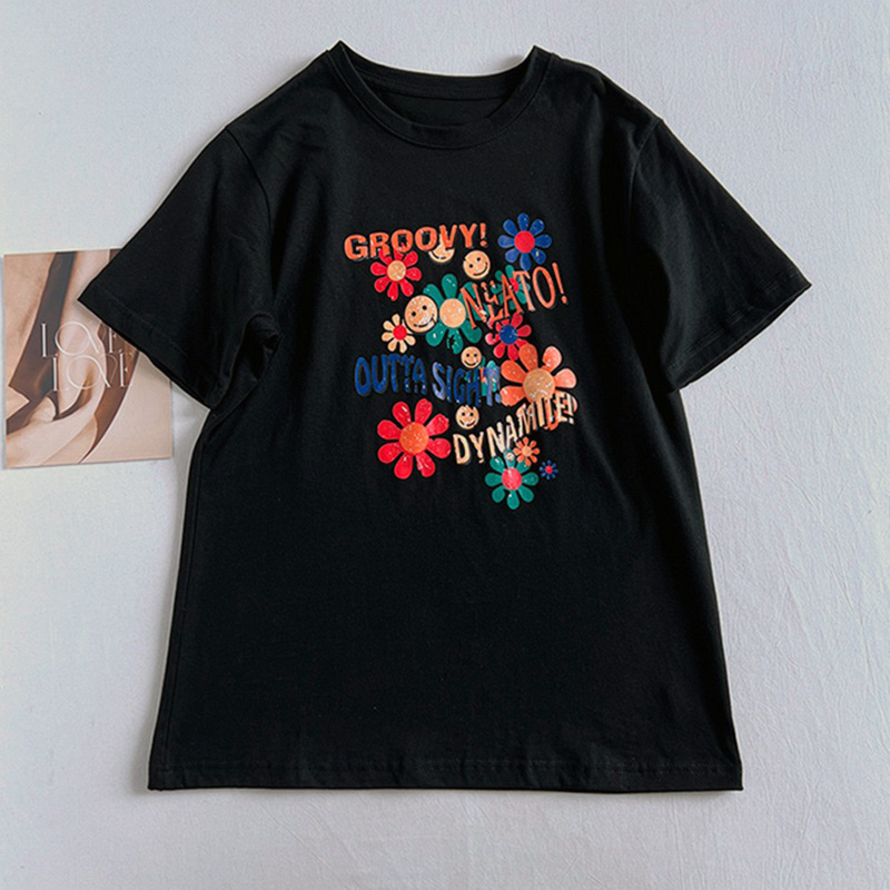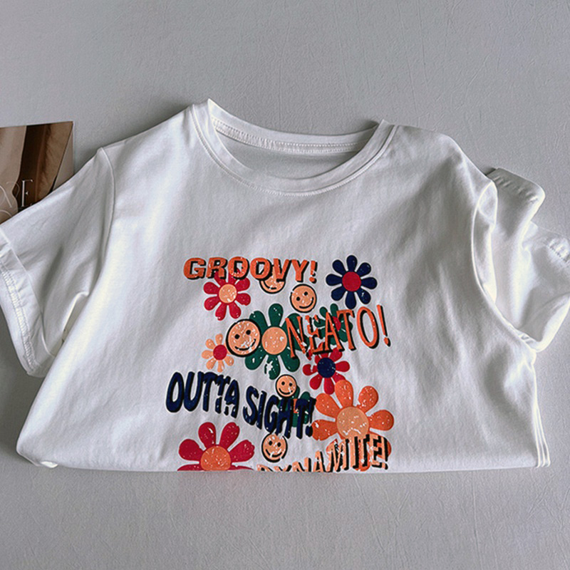 Cute graffiti cartoon lovers dress round collar short sleeves T-shirt male and female loose 2022 Summer casual T-shirt blouses