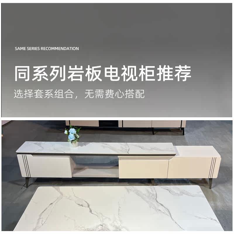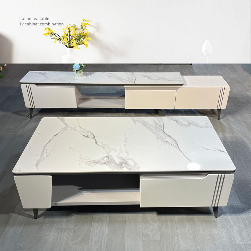 New slate coffee table TV cabinet combination modern minimalist light gray and white small apartment light luxury home TV cabinet