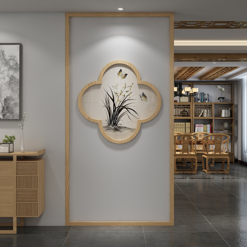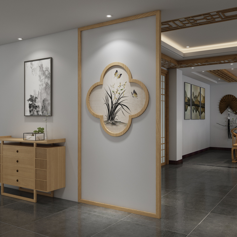 New Chinese screen wall XuanGuan Living Room Villa Solid Wood inlet hollow abstraction decoration simple customization