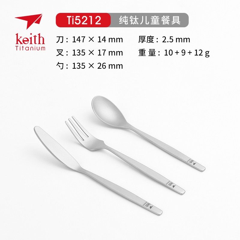 keith shears pure titanium children dining spoon meal three sets healthy and environmentally friendly cutlery small number knife fork spoon TI5212-Taobao