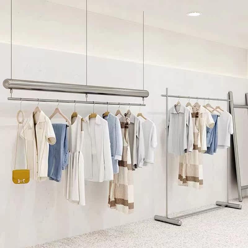 Clothing Store Design Furnishing Suspended Ceiling Hanging Stainless Steel Show Shelf Personality Styling Sub Warhead Hanging Hanger Rack