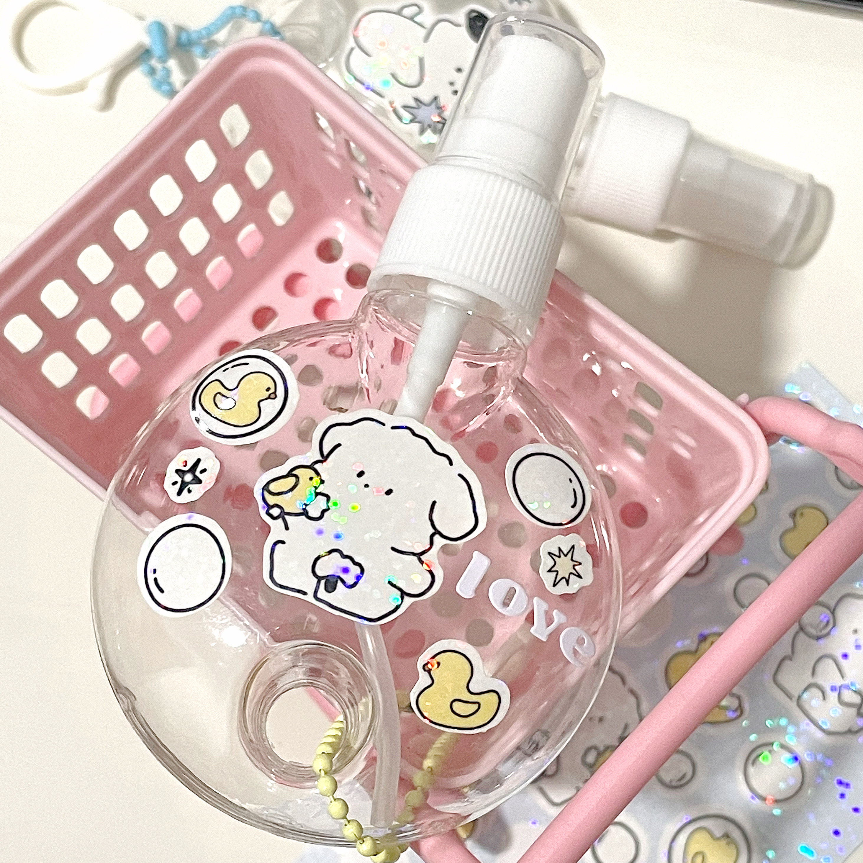 Round spray bottle Blue chain White button meteor sticker round spray bottle Yellow chain White duck sticker round transparent spray bottle White button round transparent spray bottle meteor sticker yellow