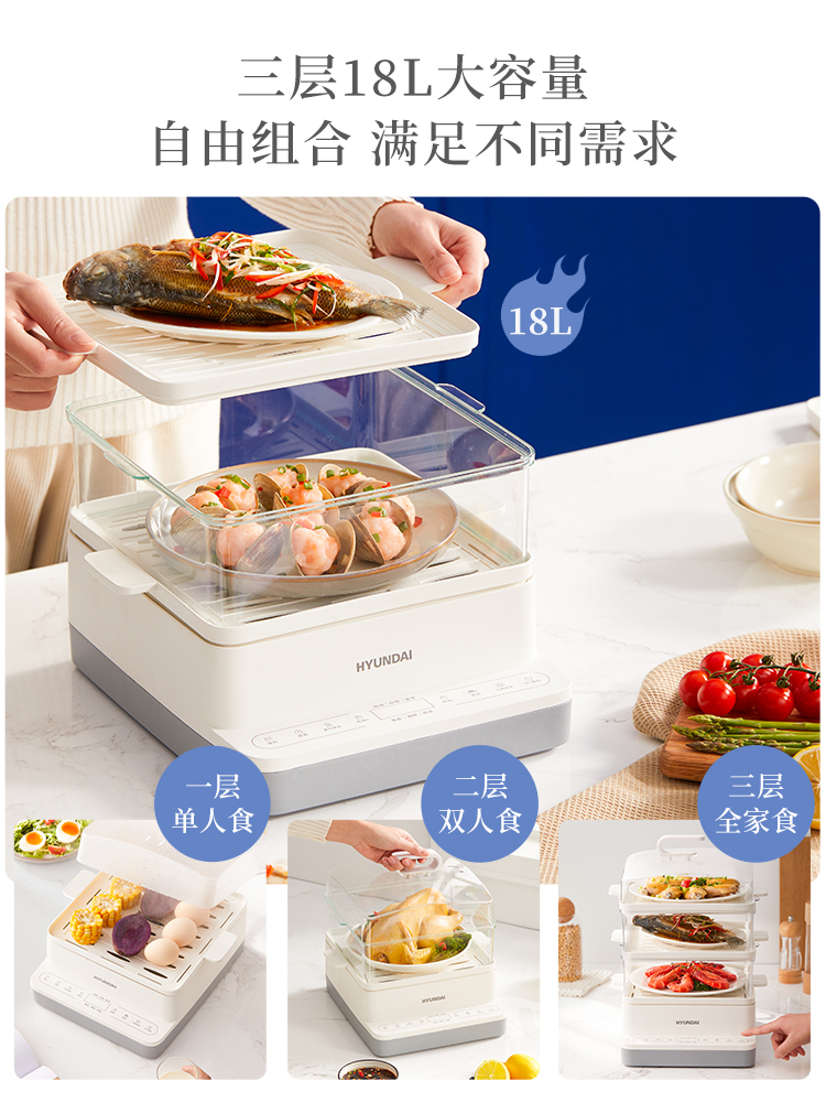 3 layers of 18 liters PP steaming grid, intelligent steaming mat*33 layers of 12 liters PP steaming grid, smart type of steaming mat*33 layers of 12 liters stainless steel steaming grid, intelligent steaming mat*3 Miss President Three