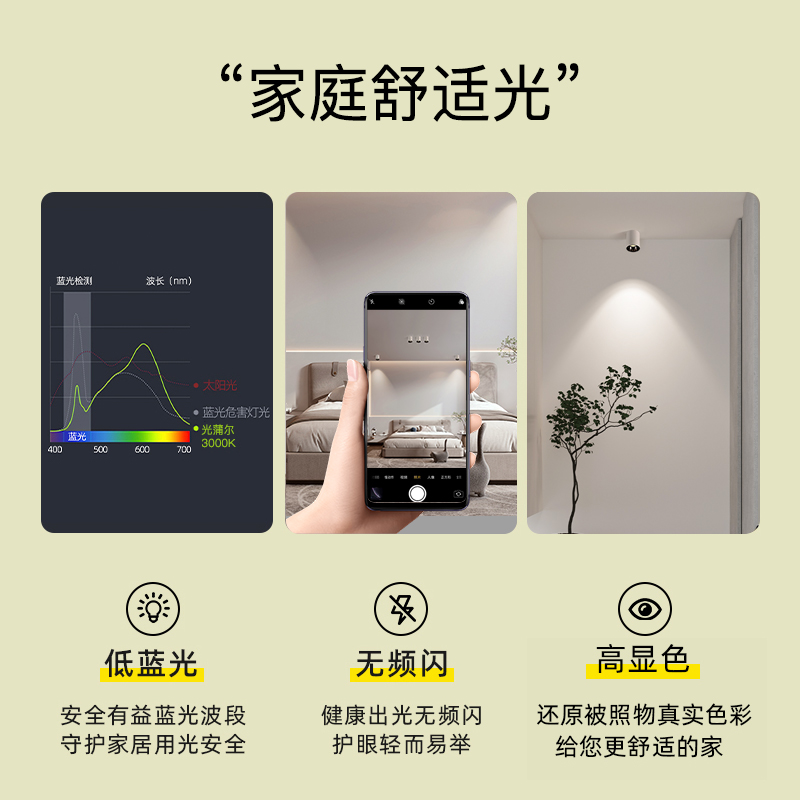 Bright Spotlight Cob Spotlight Deep Cup anti - glare opening suction ceiling drum household living room 3500k without main lamp