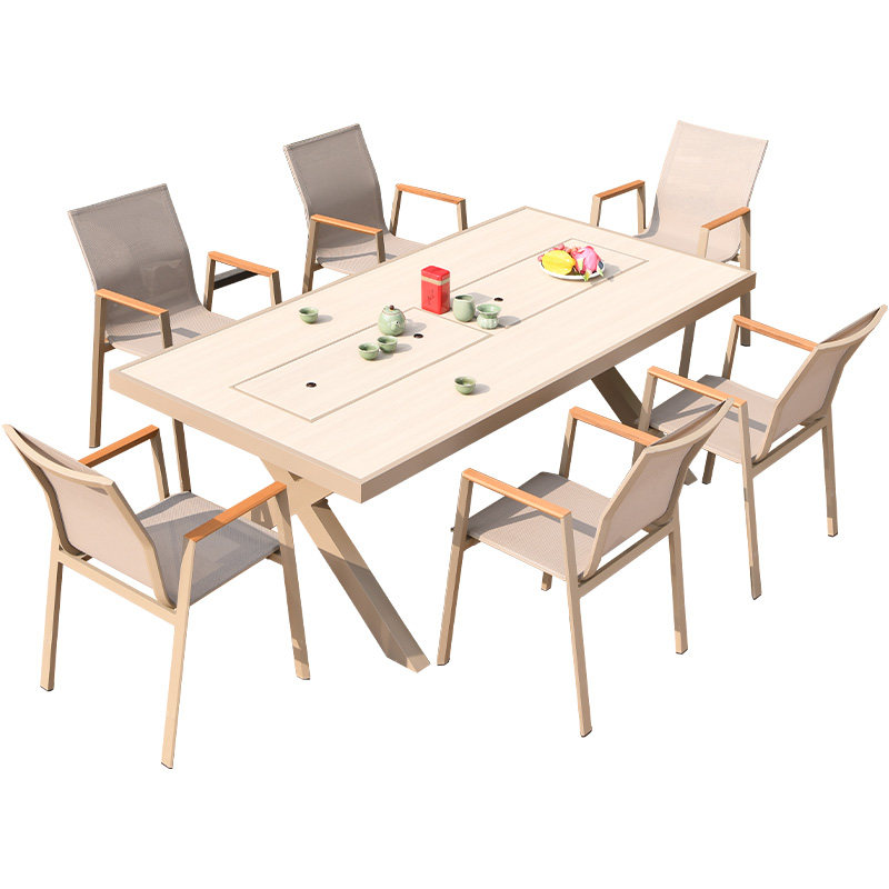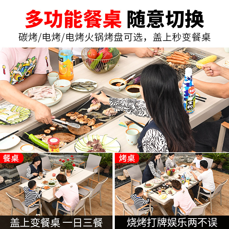 Far-lush outdoor barbecue table and chairs Leisure Courtyard Garden villa Electric baking table aluminum alloy outdoor carbon baking table dining table and chairs-Taobao
