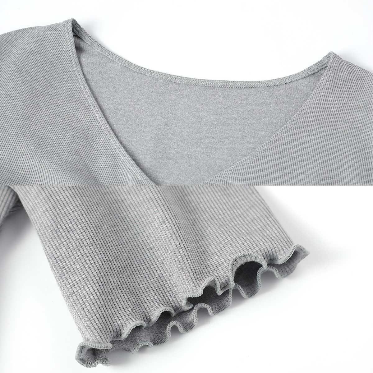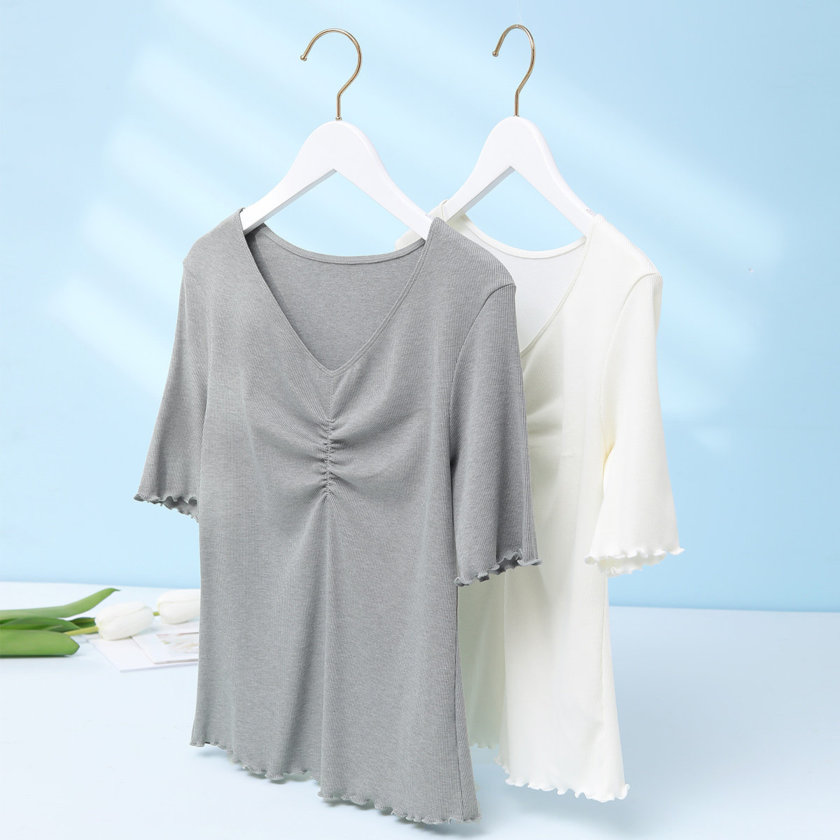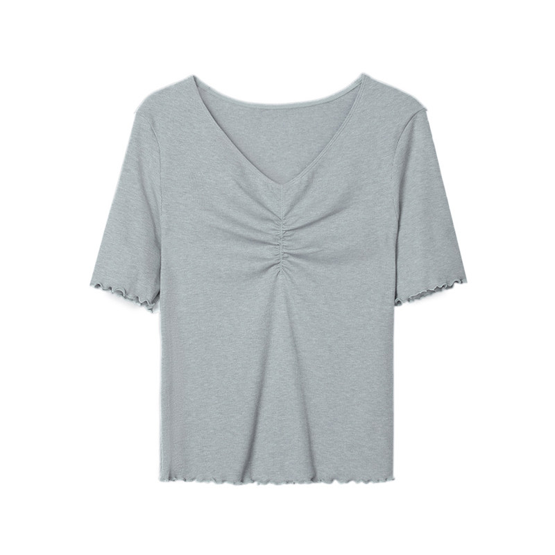 Anly Fang cotton short sleeve V collar knit undershirt lady can wear a home blouse ED00213 -Taobao
