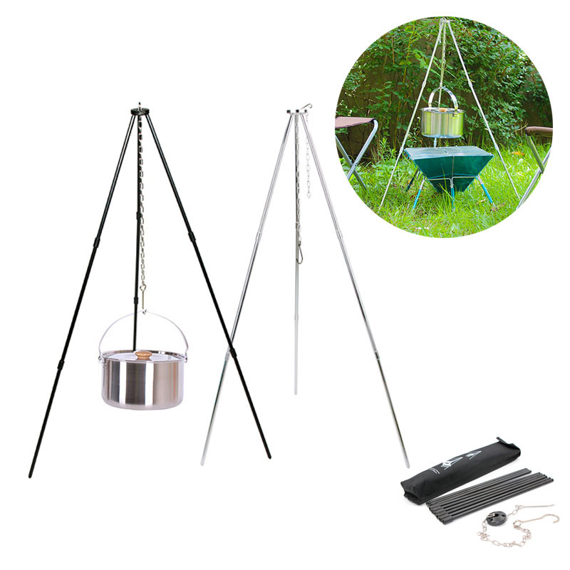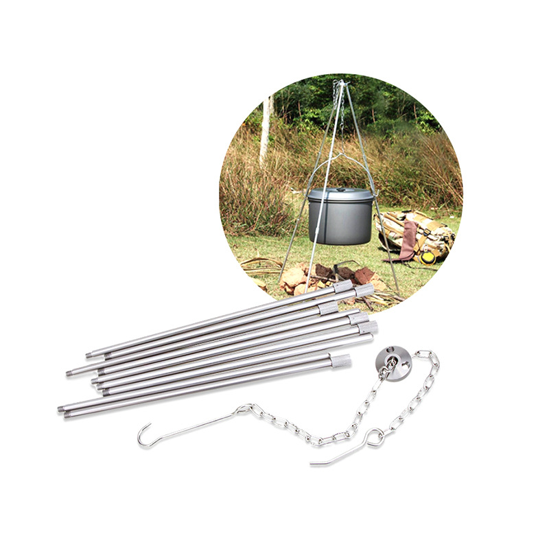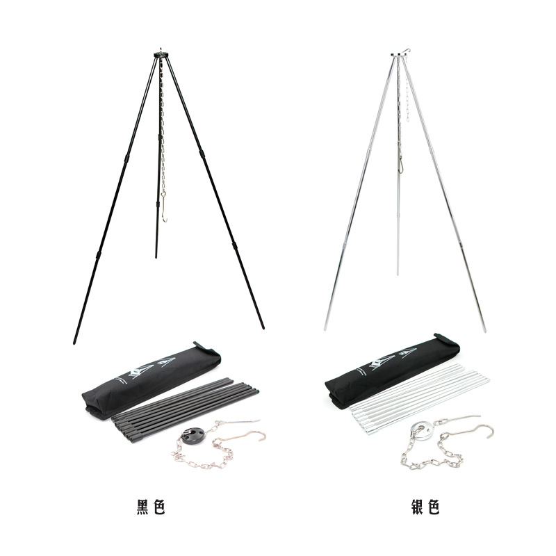 Outdoor Tripod Pendant Pan Bracket Wild Camping Wild Cooking Equipment Tripod Bonfire Cookware Camping Pan With Cutlery Portable-Taobao