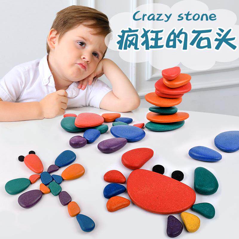Children Early Teach Rainbow Combinations Laminated Stones Nordic Wind Ins Colorful Fun Laminations High Hand Eye Coordination Puzzle Toys