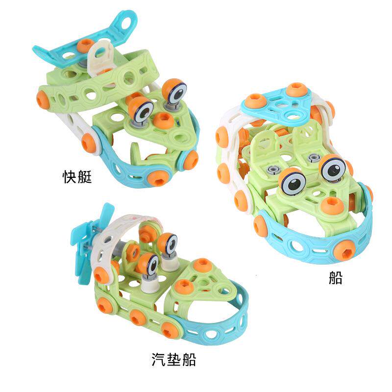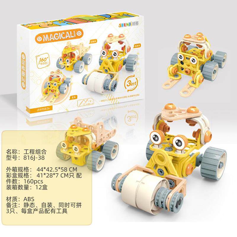 Three-in-one engineering car nut removable patrol boat plastic large grain combined assembly building block with disassembly tool