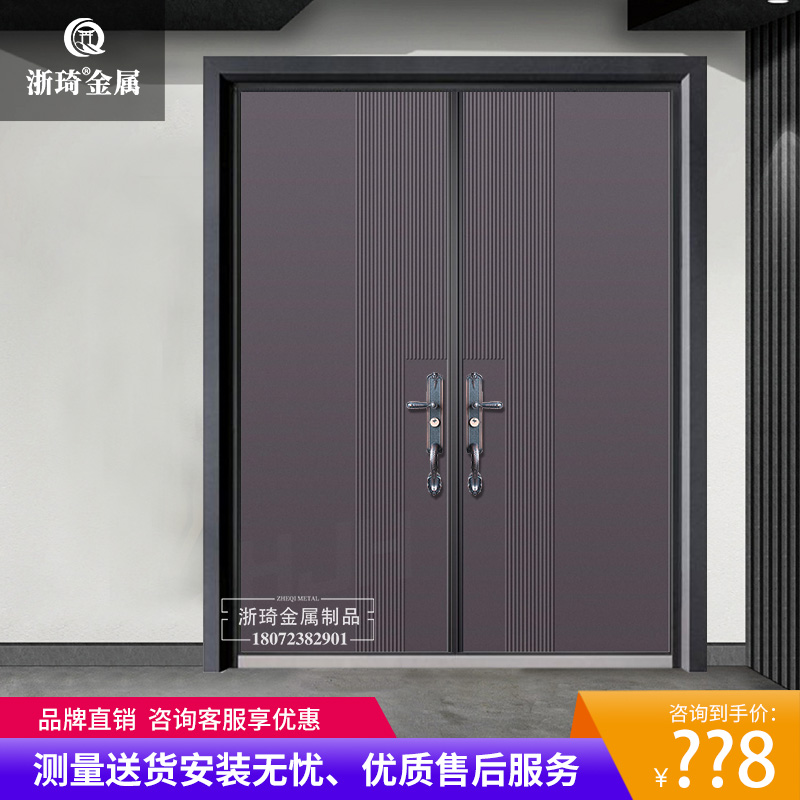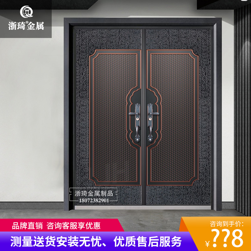 Luxury villa door explosion-proof imitation cast aluminum door imitation copper door aluminum alloy courtyard door double switch four-open home security door