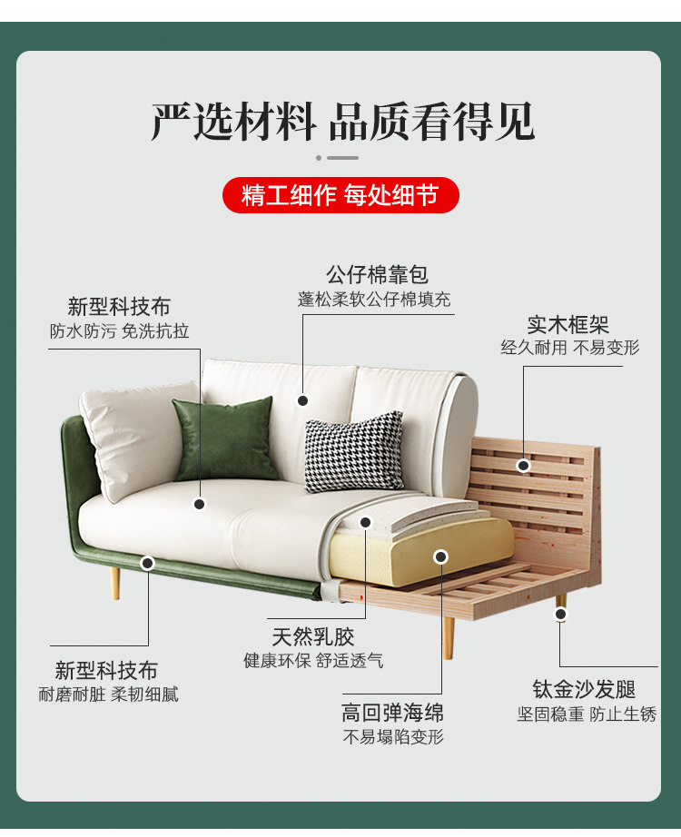Technology cloth sofa small apartment living room modern minimalist Italian light luxury net red three-person rental fabric sofa