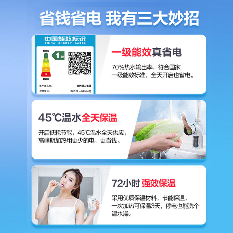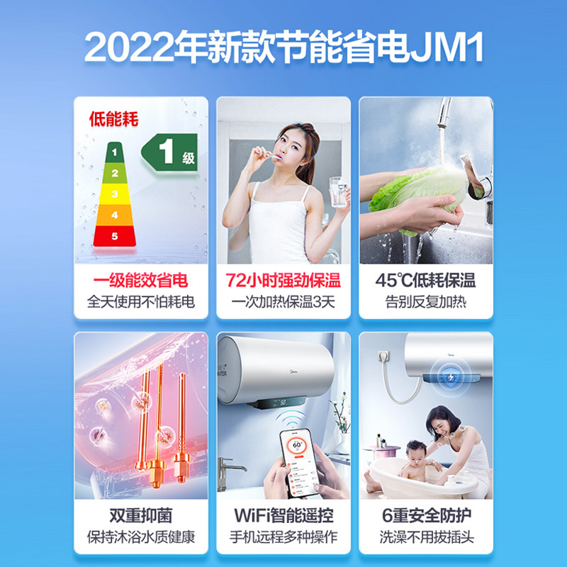 (New) Midea electric water heater household first-class energy efficiency 50 60 80 liters bathroom bath speed heat JM1