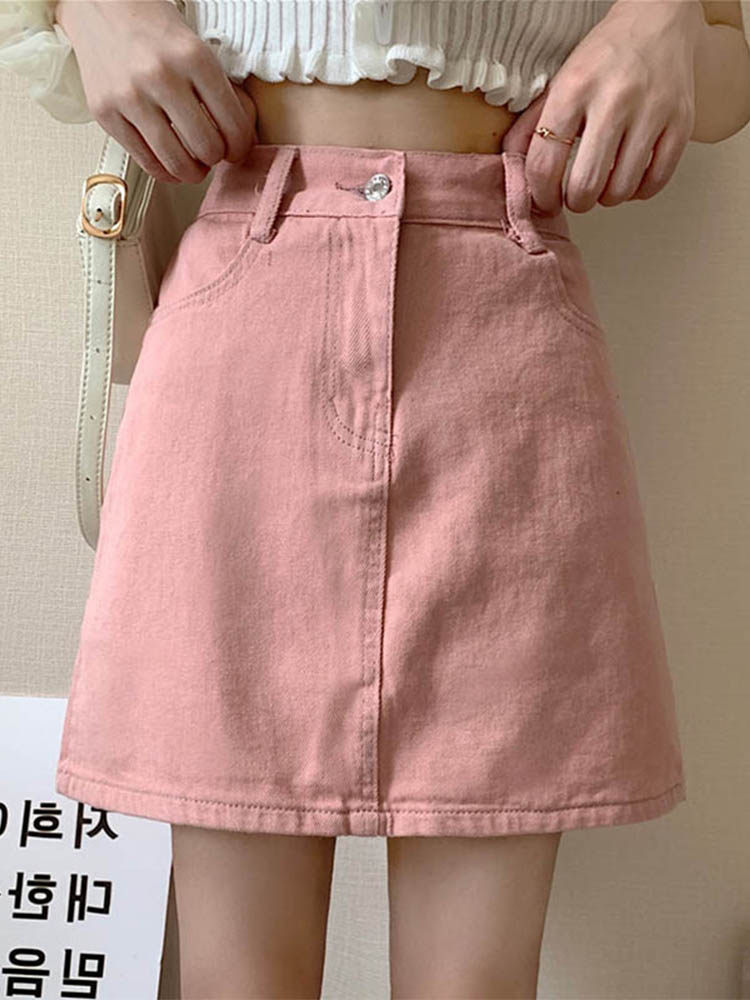 Sweet Spicy Dress Slightly Fatter Size Pink Denim Half Skirt Woman 2022 new pear-shaped stature Slim Shade a short skirt