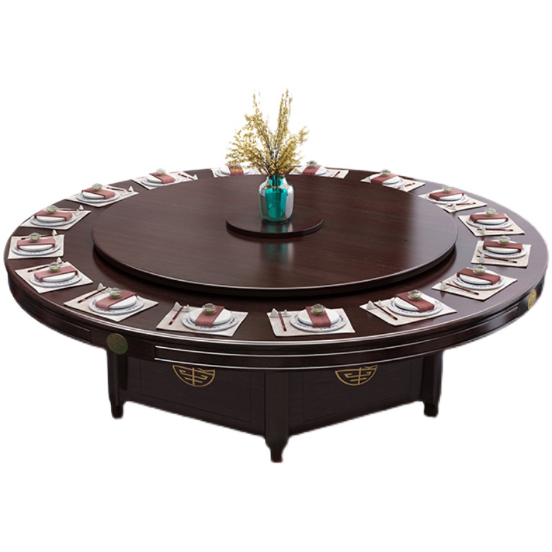 Hotel solid wood table with electric turntable electromagnetic oven 15 people New Chinese restaurant hot pot table