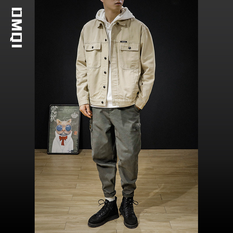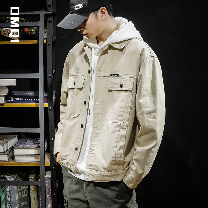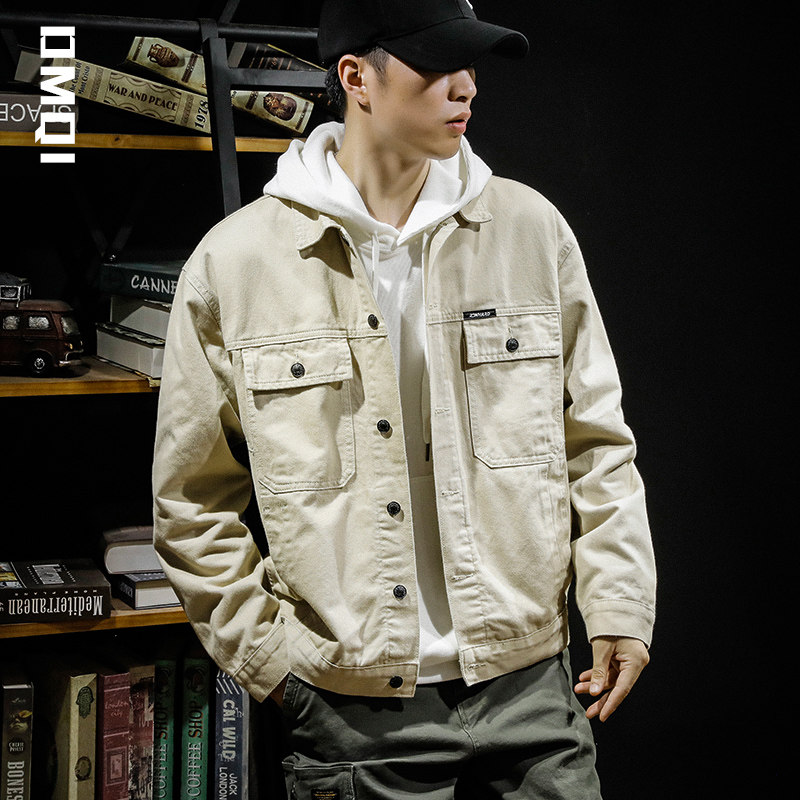 Spring and autumn Leisure turnover Flying Tooling Jacket Spring Denim Jacket Male Loose large size for winter Cavet Thickened Tide