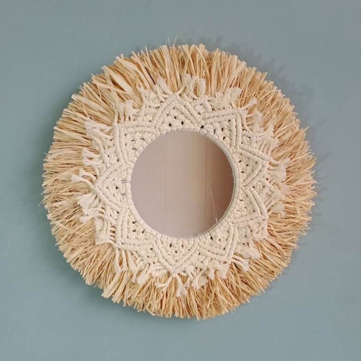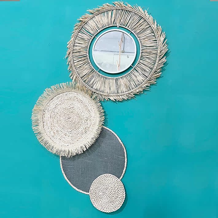 Nordic ins Indonesia Grass woven rattan choreography with wall Mirrors Decoration Hanging Accessories Home Folk original handmade wall-mounted