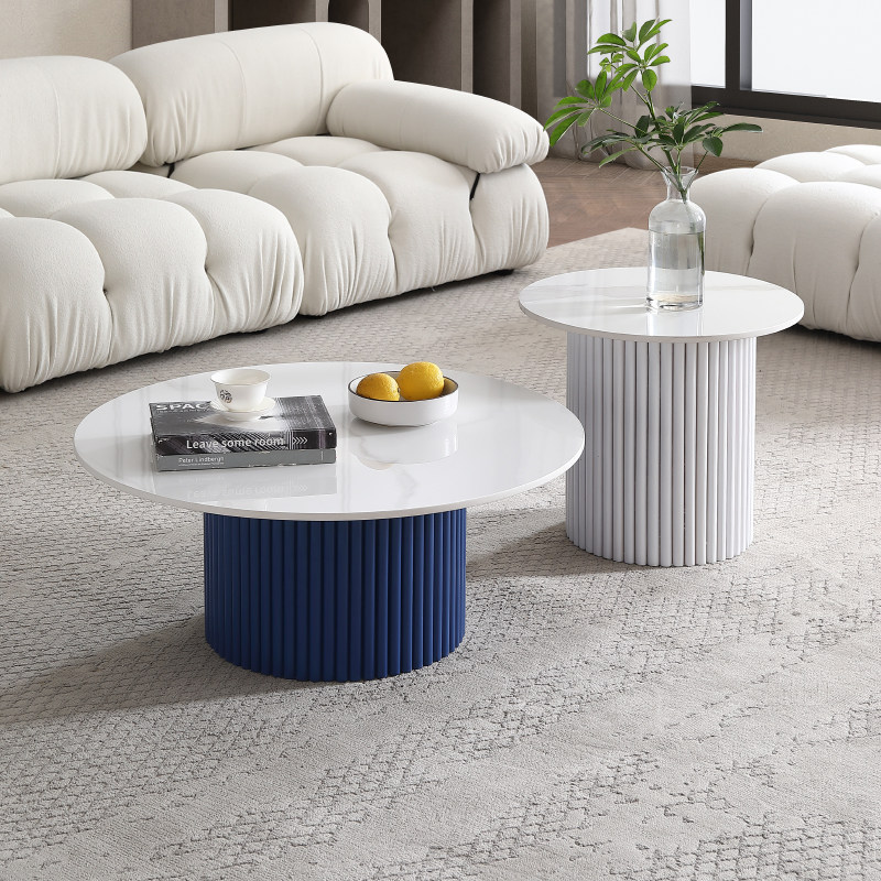 Nordic style design cylindrical size round table light luxury rock board coffee table combination modern minimalist small living room coffee table