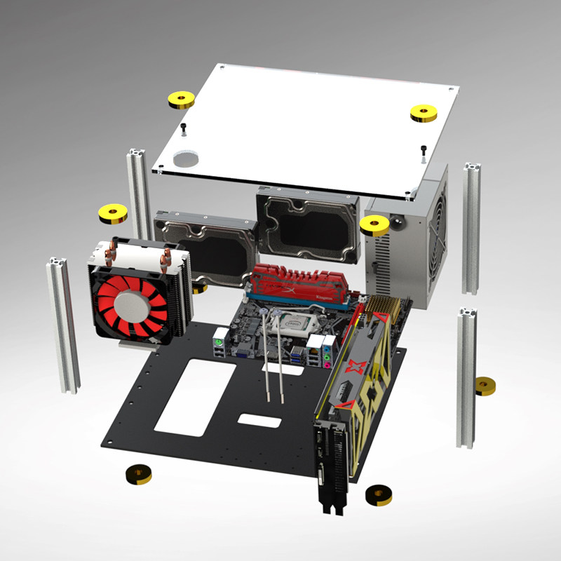 ITX small bottom MATX medium bottom ATX large bottom EATX super large bottom ITX small middle (for stacking) MATX medium middle (for stacking) ATX large