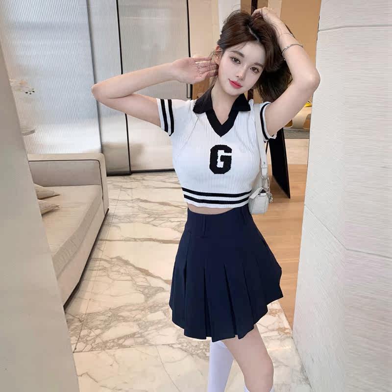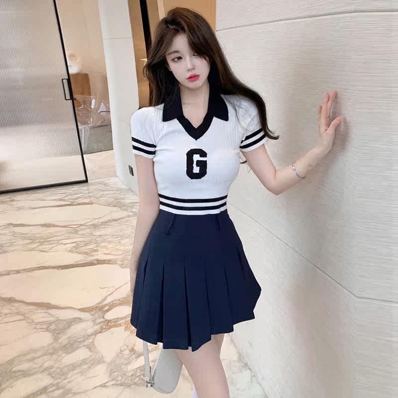majealure suit dress skirt woman Summer Korean version of the salt can be salt sweet little fresh and reduced age college wind two sets