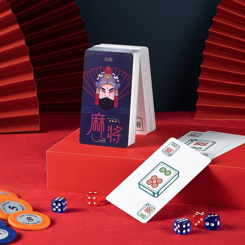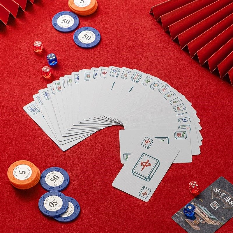 Guochao Card Mahjong Playing Cards Plastic Long Cards Thickened Waterproof Portable Travel Home 144 Chang-Taobao