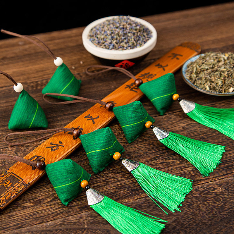Green triangular glutinous rice dumplings wrapped in rice balls
