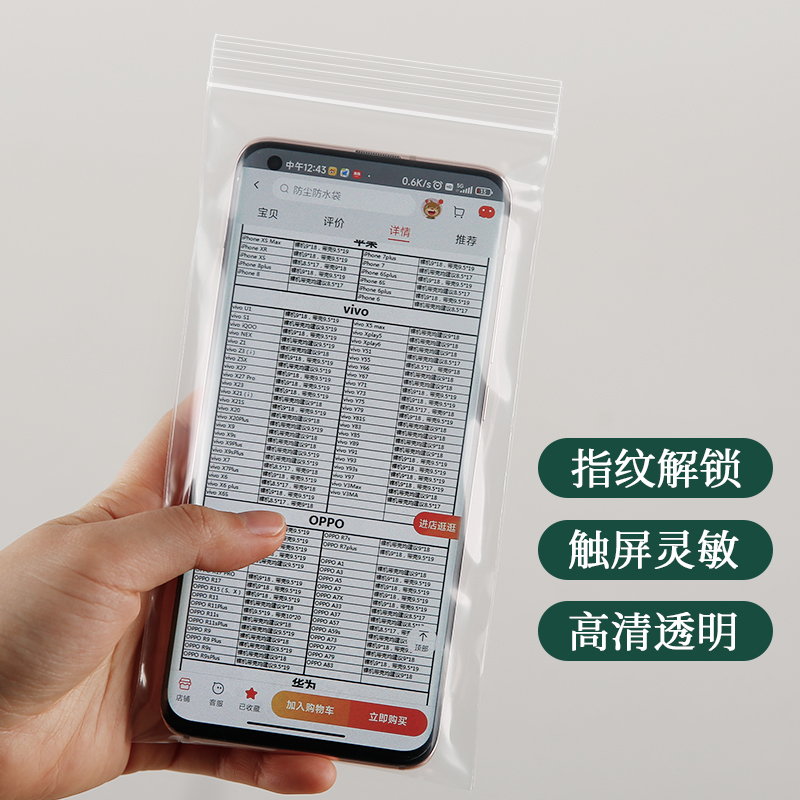 Thickened transparent mobile phone waterproof bag dustproof sealing protective cover disposable self-sealing plastic bag touch screen
