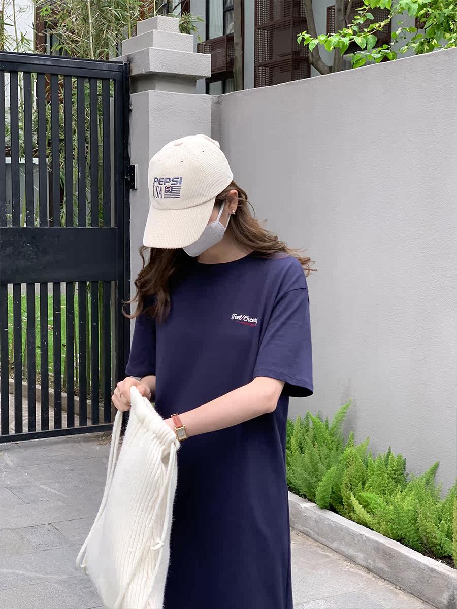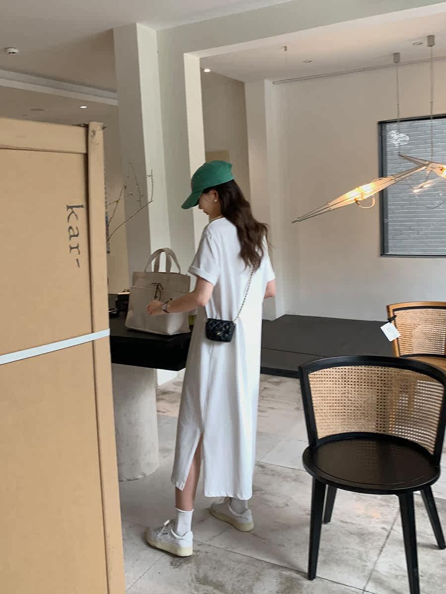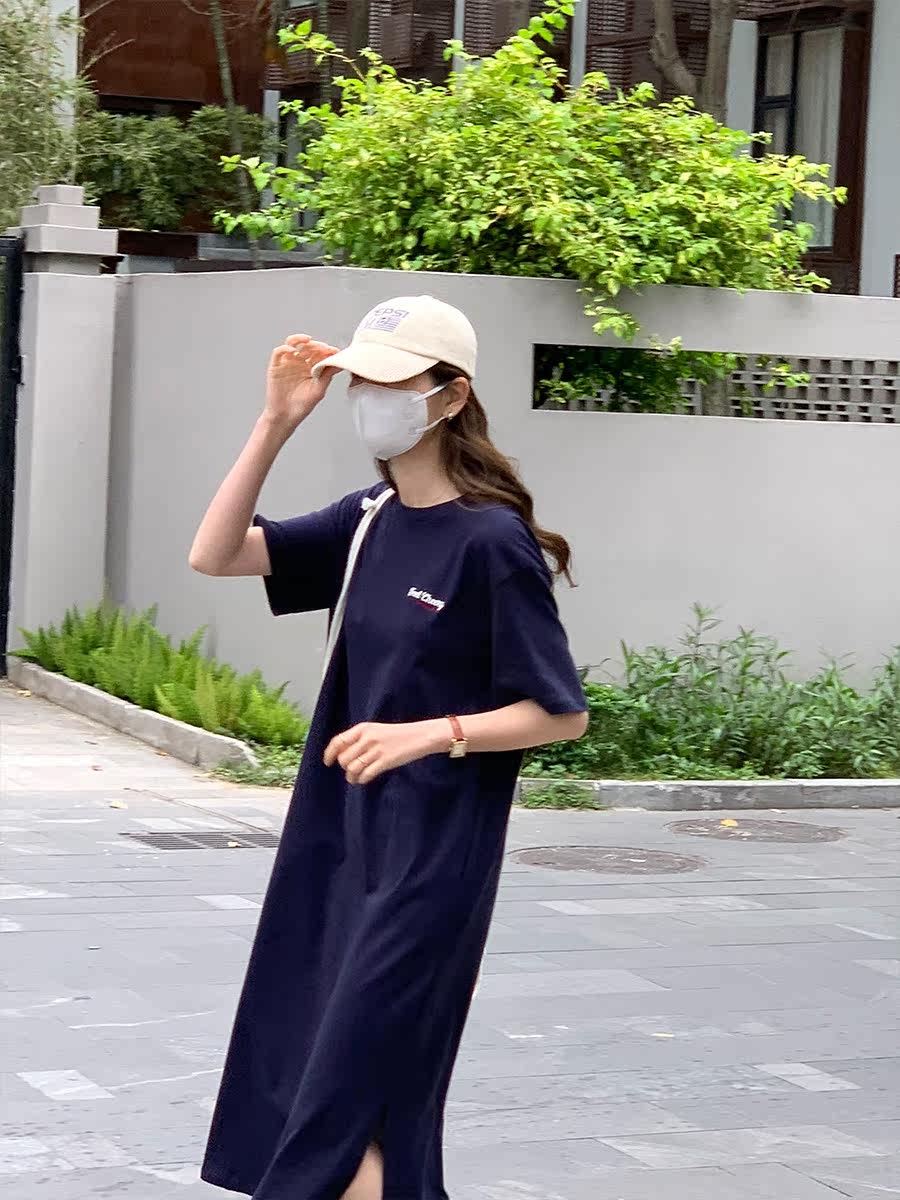 5siss letter print short-sleeved t-shirt skirt female small Korean version loose straight tube was thin over the knee dress summer