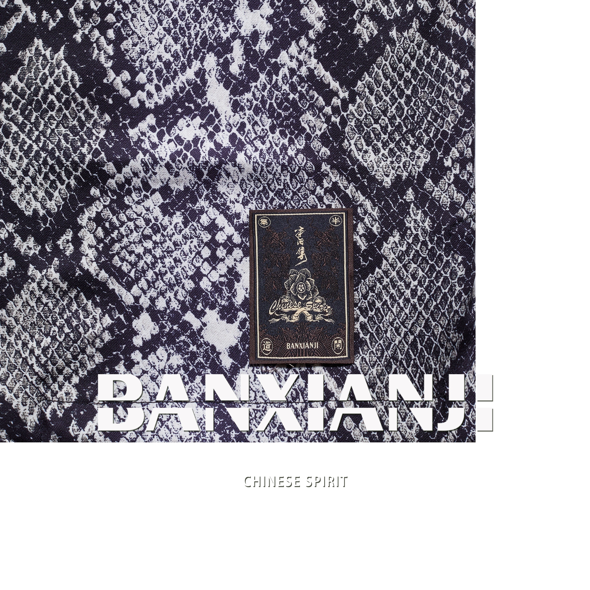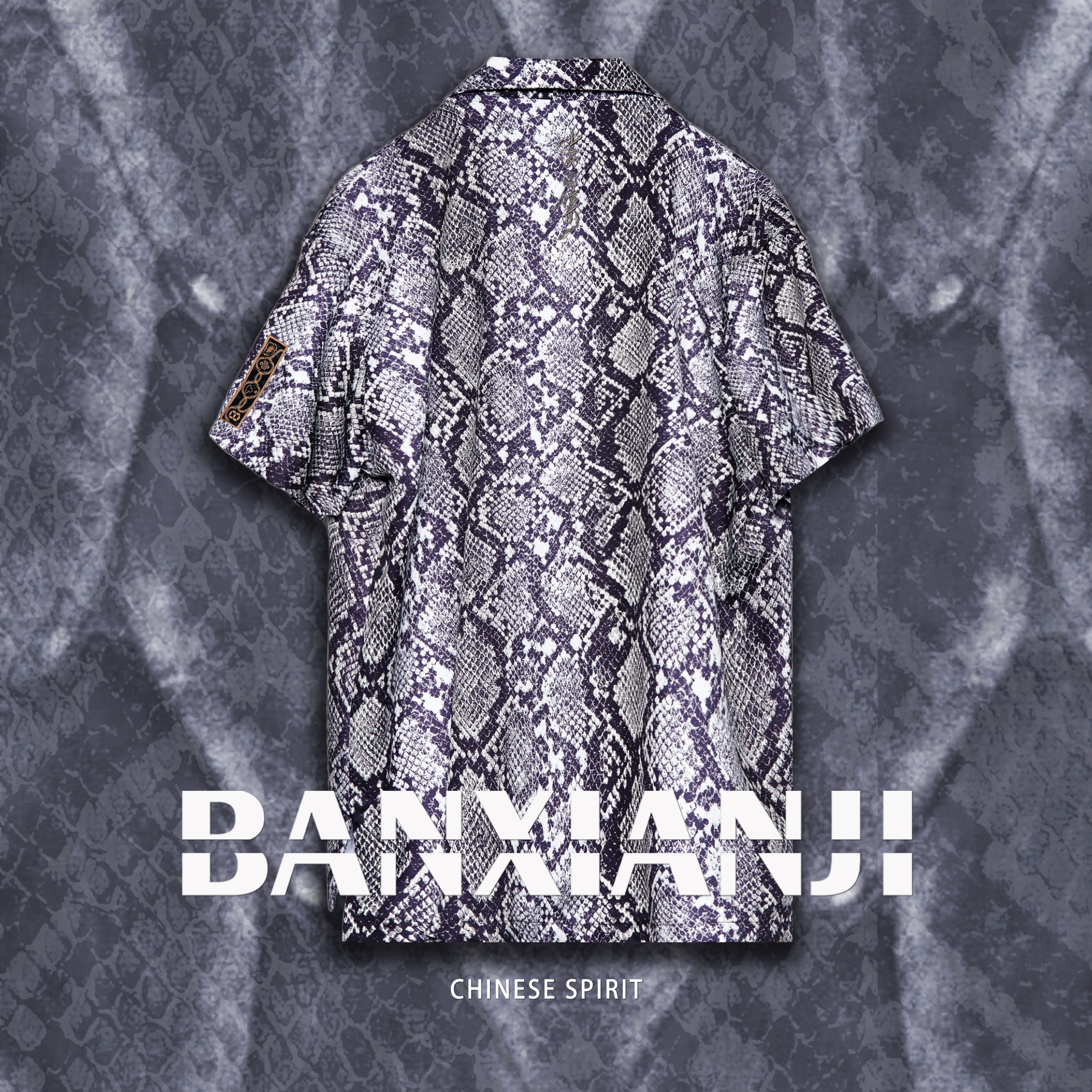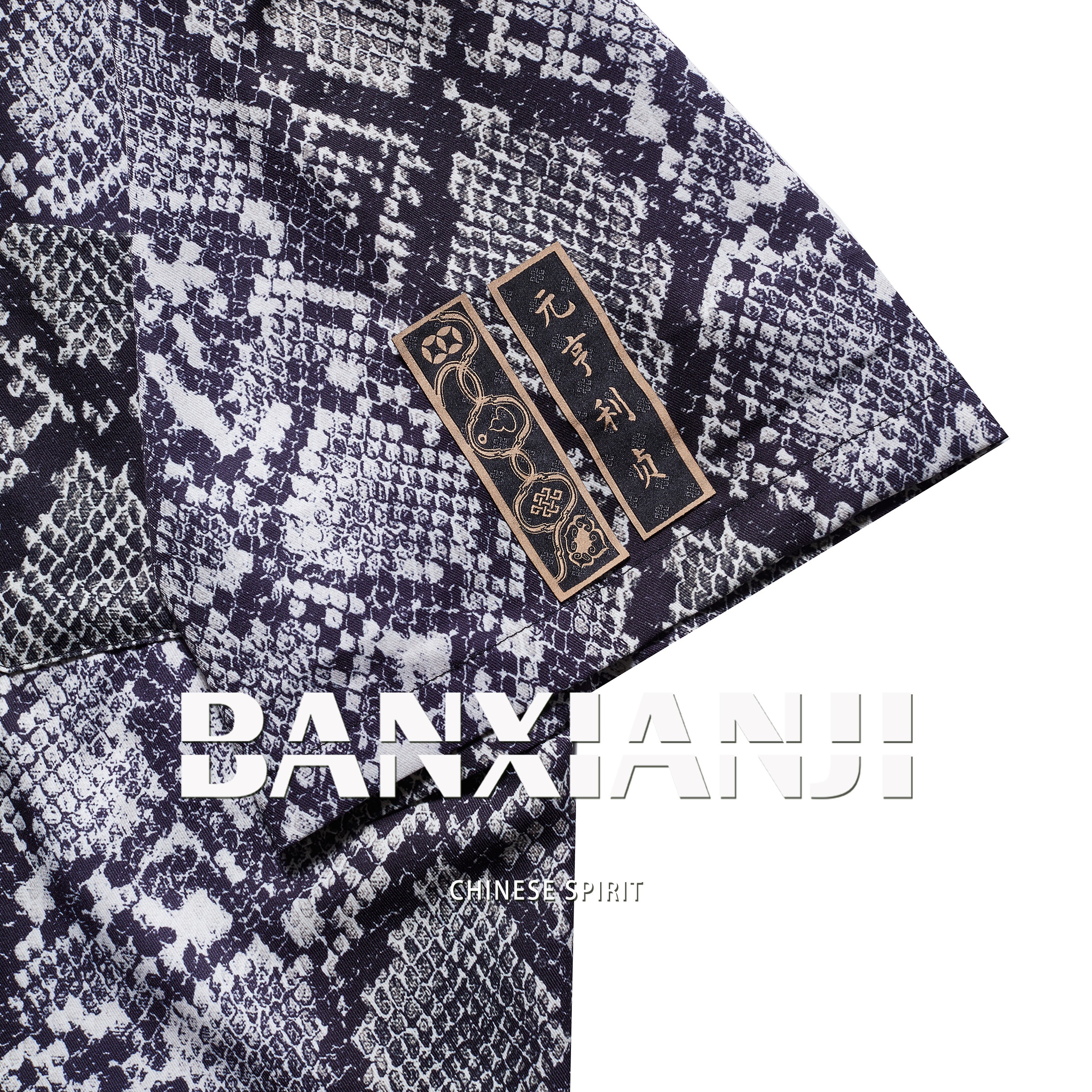 Semi-idle set Divine Beast "Big Snake" Summer New python print Cuban collar short sleeve shirt Down