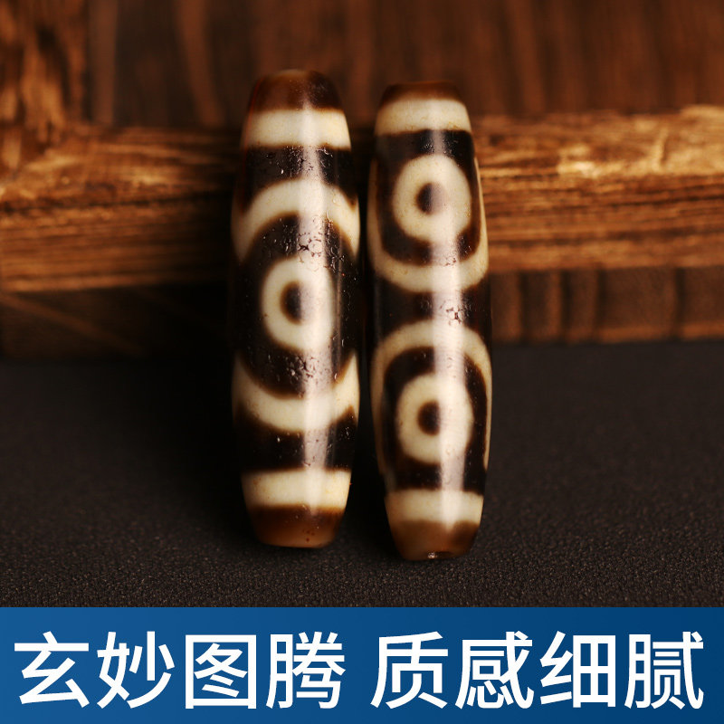 To pure three-eyed dzi bead bracelet Buddha beads accessories diy Tibet natural genuine agate pendant men and women collarbone chain
