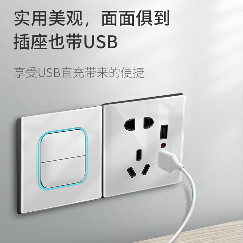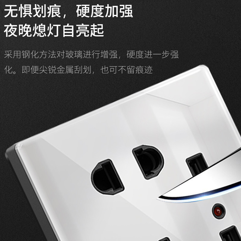 International Electrician Switch Socket Panel 86 Type White Tempered Glass Five Holes Concealed Wall 16a Air Conditioning Porous