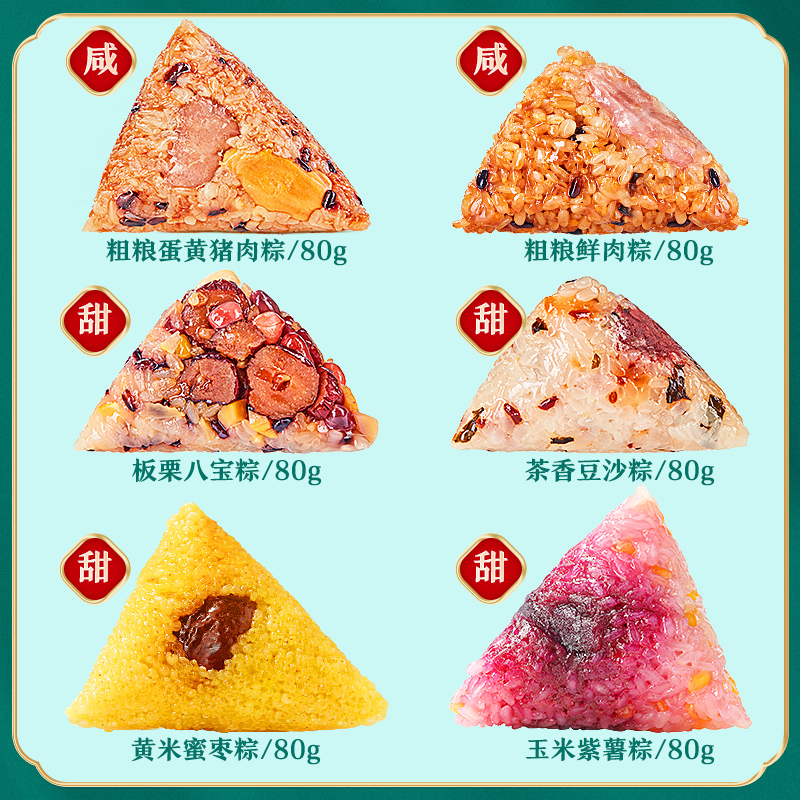 Miscellaneous Cereals Egg Yolks Pork Rice Dumplings 80gx3 Minor Cereals Fresh Meat Rice Dumplings 80gx3 Tea Scented Bean Sand Rice Dumplings 80gx3 Pieces Of Chestnut Eight Pongzi Rice Dumplings 80gx3