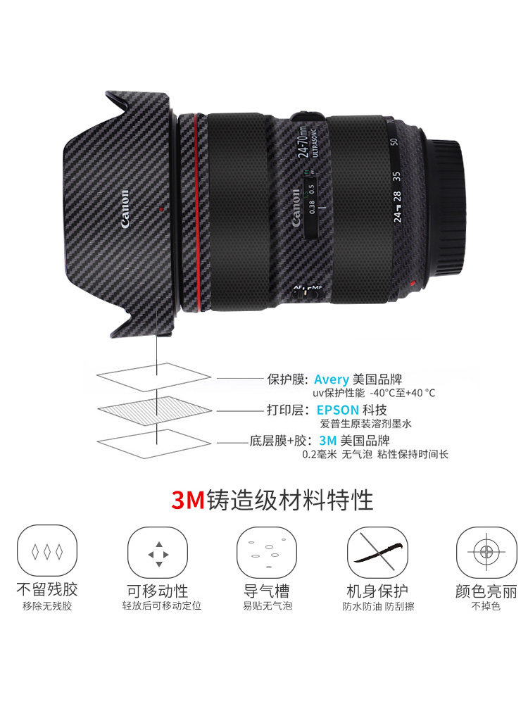 Suitable for Canon EF24-70mm f 2 8L II lens Anti-collision strip film 2470 Generation camera stickers CANNON lenses full package protective film carbon fiber sticker camouflan 3