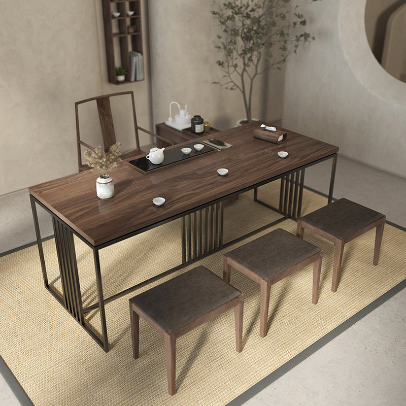 Participating Black Hu Peach Wood New Chinese Style Minimalist Tea Room Dining Room Dining Room Xuan Guan Changing Shoes Chair Stool Bedroom Dressings Soft Bag Stool D4