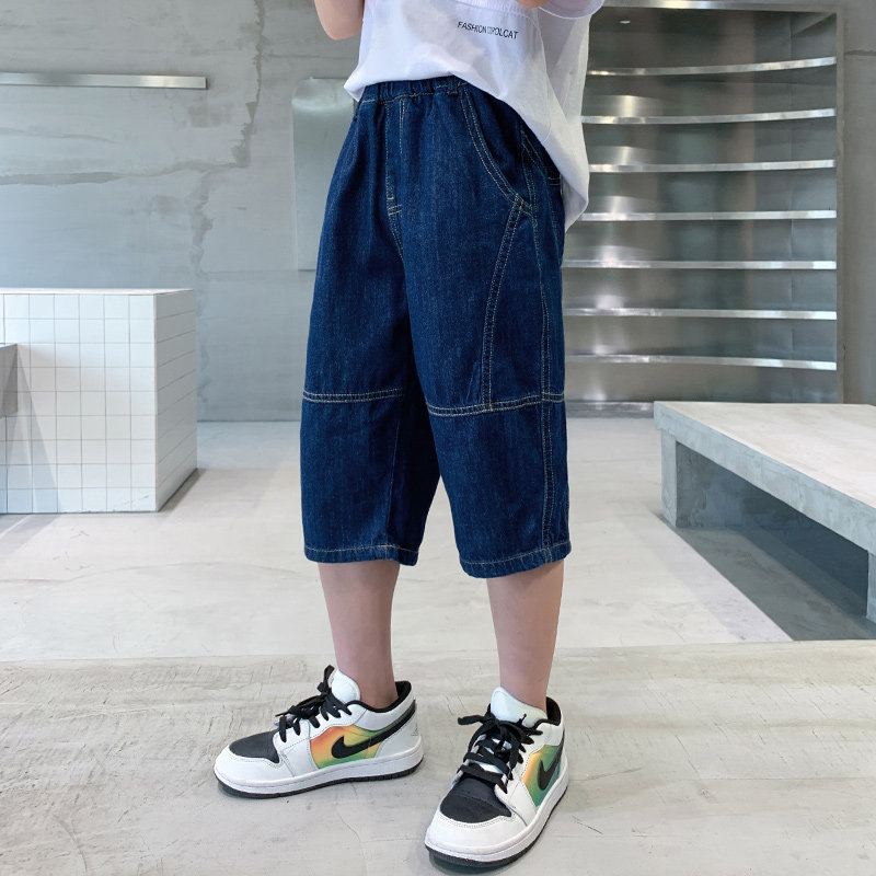 Boy pants 2022 Summer new children Denim Shorts Fat Boy Seven pants CUHK Scout pants thin