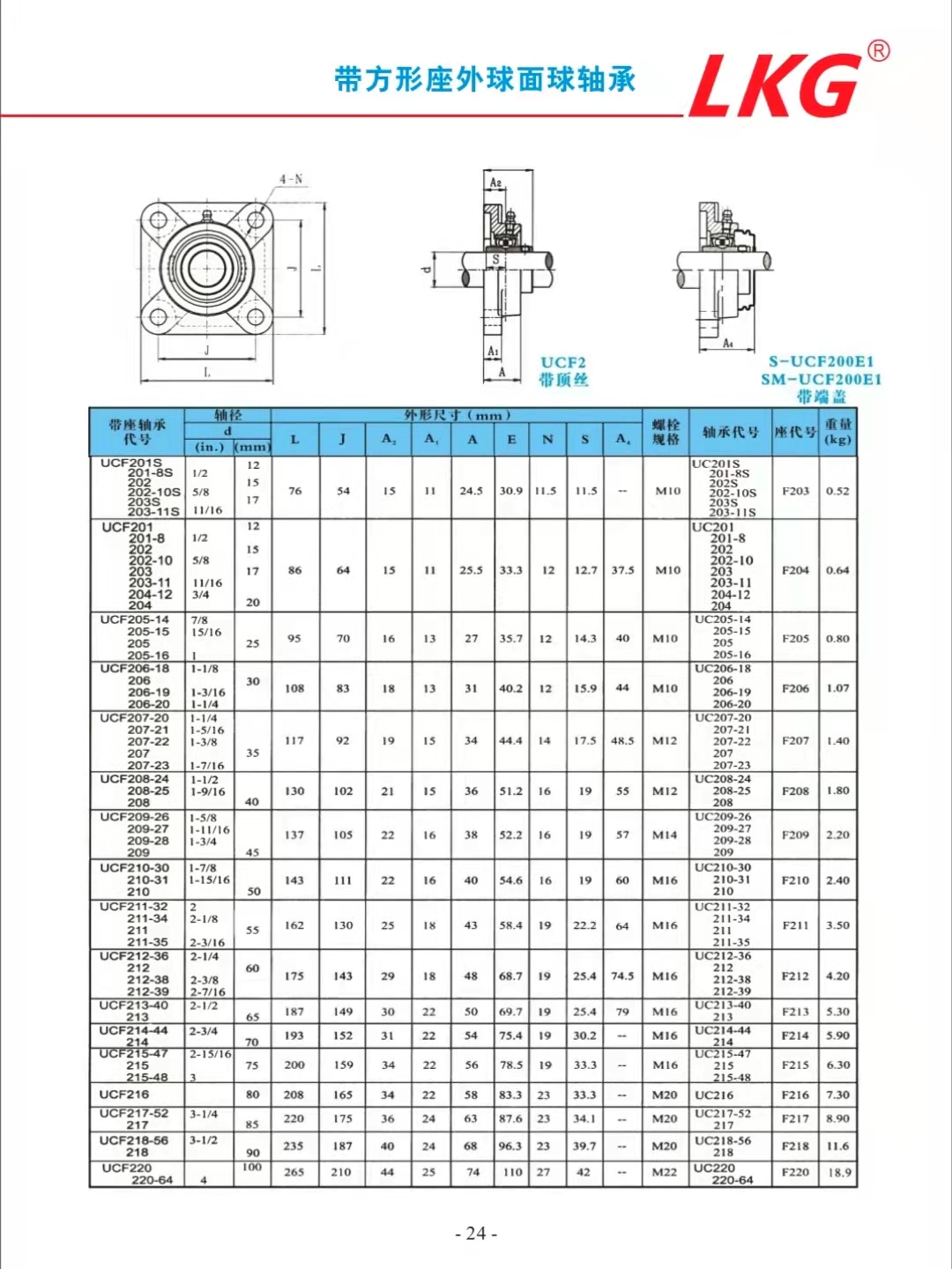 Outer spherical belt square seat bearing UCF201F202F203F204F205F206F207F208F209F210