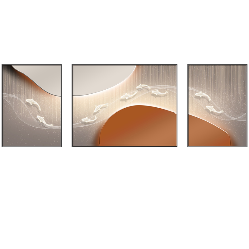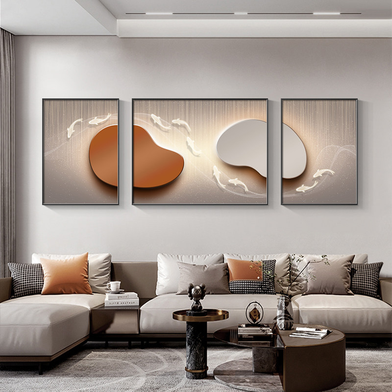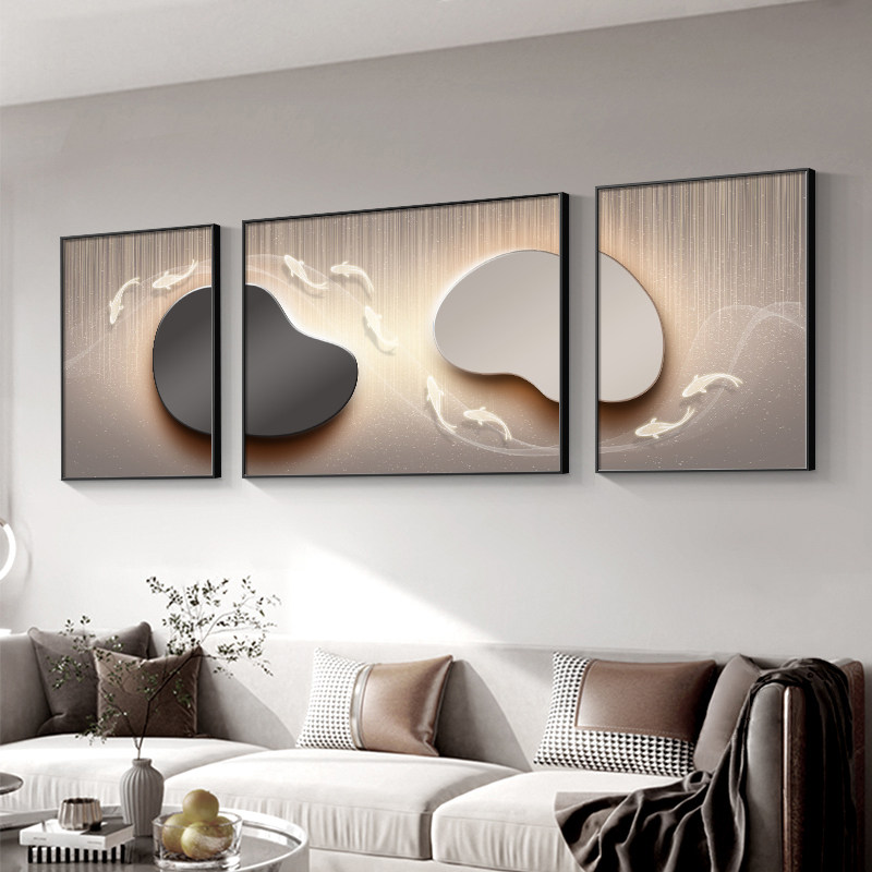 Modern Living Room Decoration Painting Nine Fish Figure Triple Murals Light Lavish Sofa Background Wall Hanging Painting Advanced Sensory painting